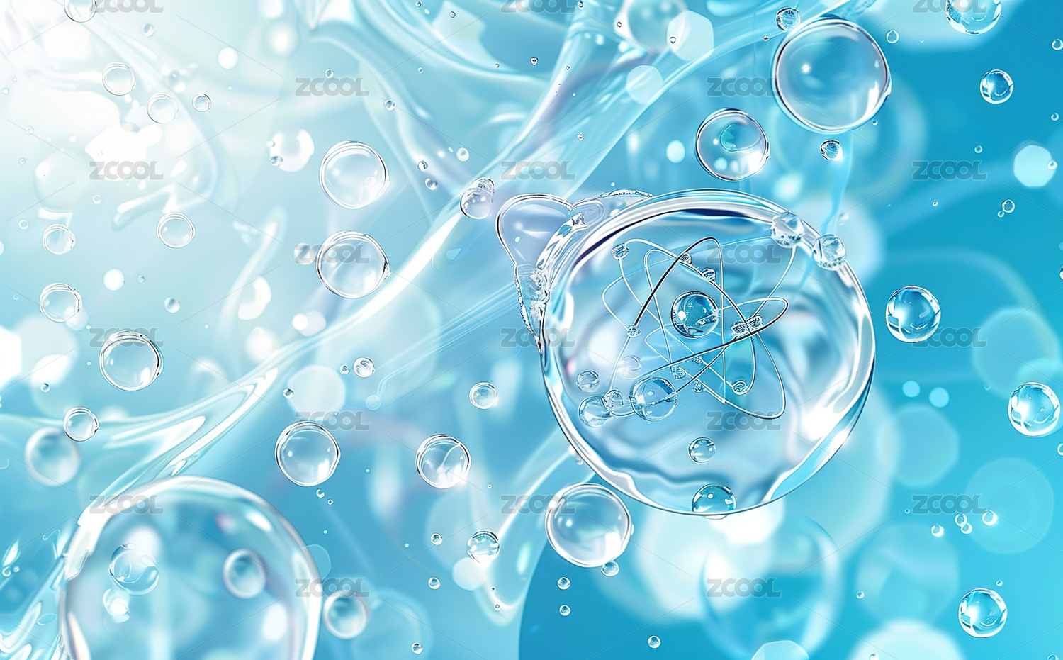 波纹线,水珠,流体,蓝色,渐变,光影,背景,三维,空间,3D