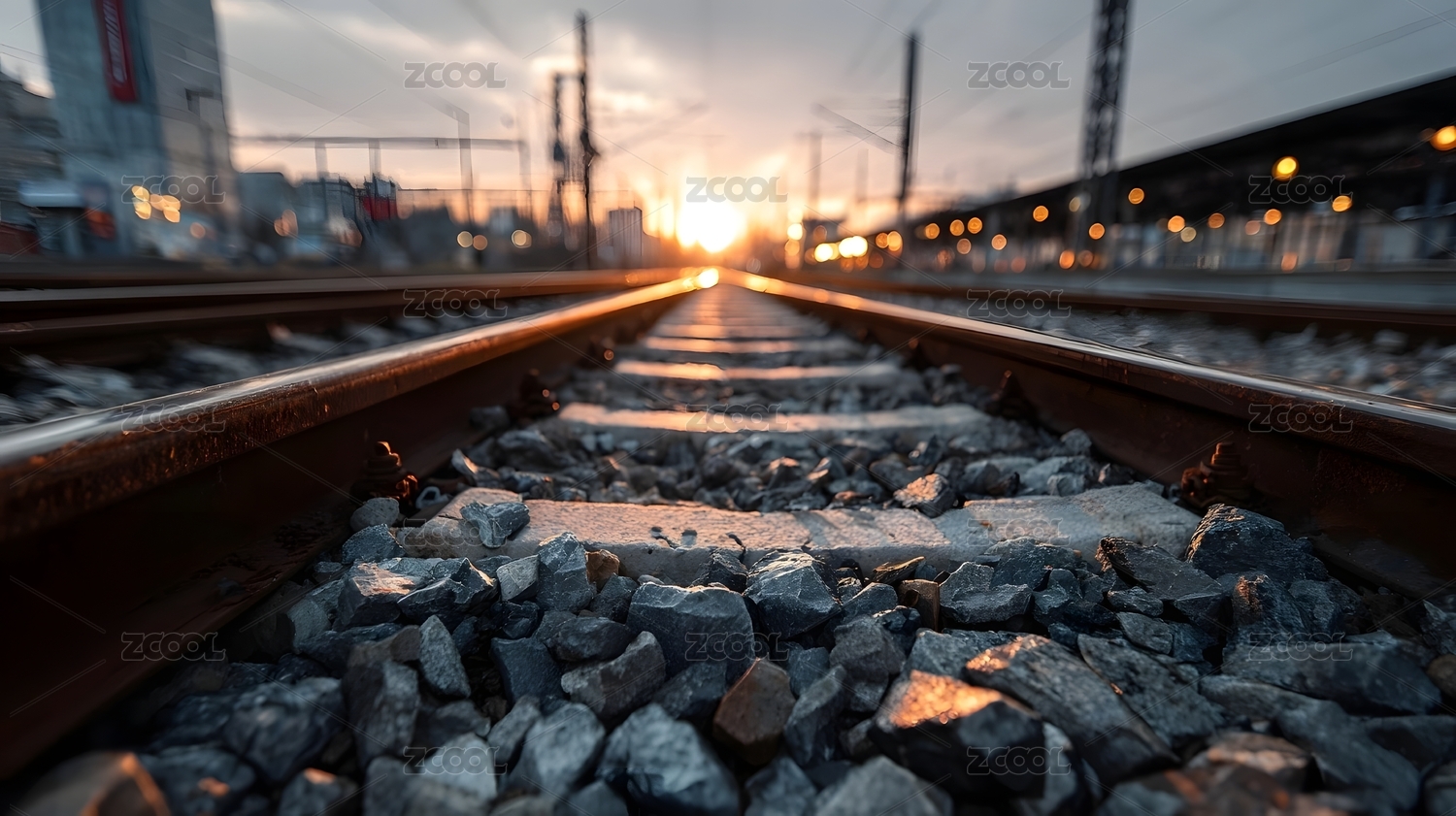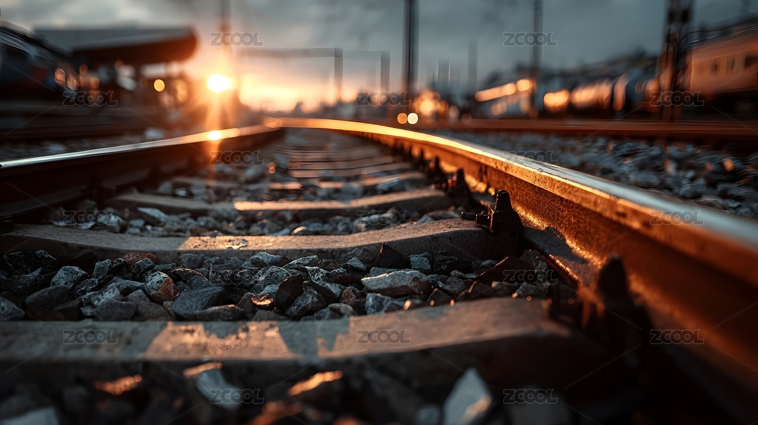 铁路,日落,天空,车灯,铁轨,建筑,远处,光线,石子,车站