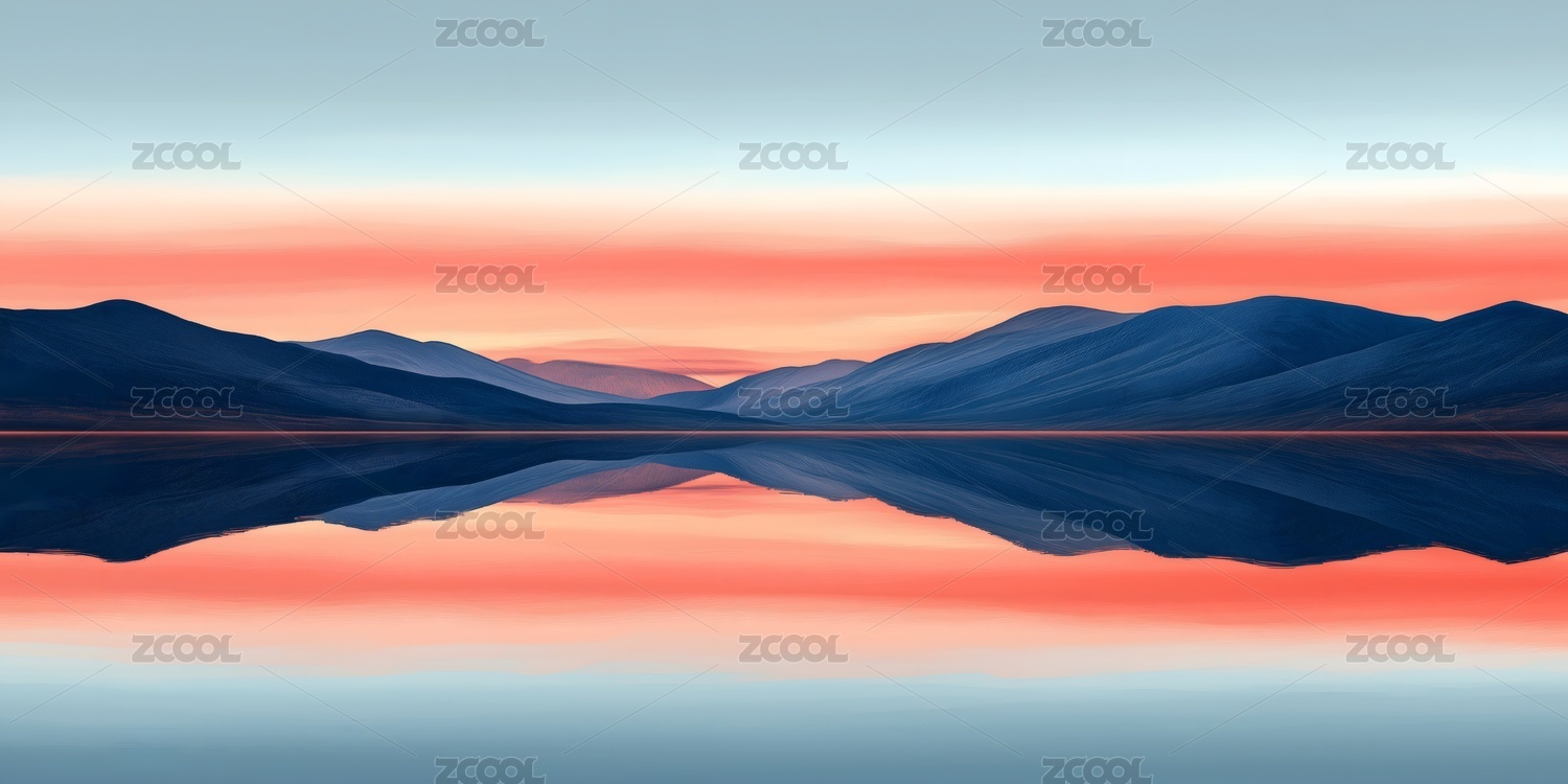 山和湖风景插画抽象艺术装饰画手机端海背景