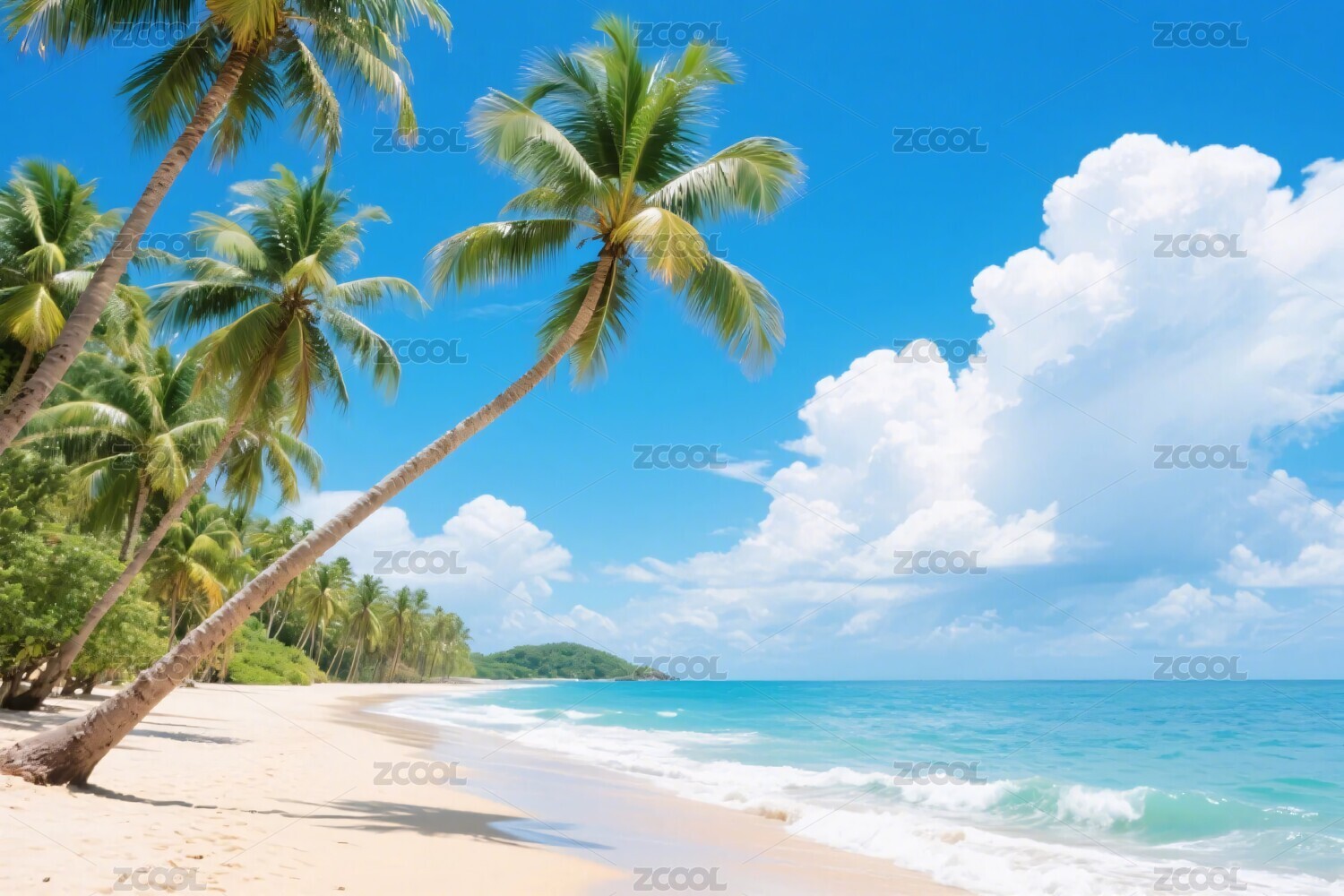 蓝天,阳光,自然,户外,风景,海滩,椰树,白云,海水,沙滩