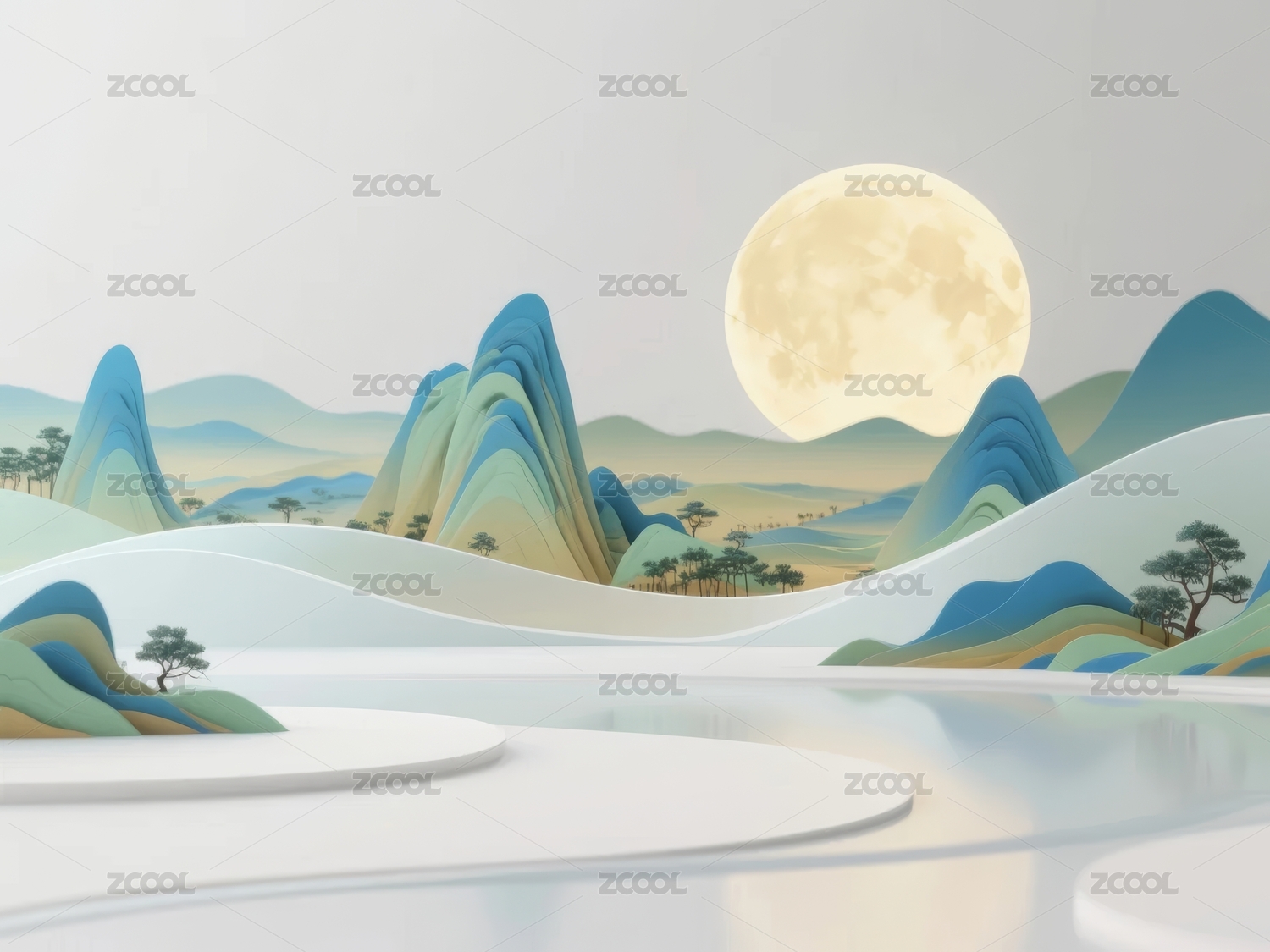 新中式水墨3D立体前卫千里江山图背景