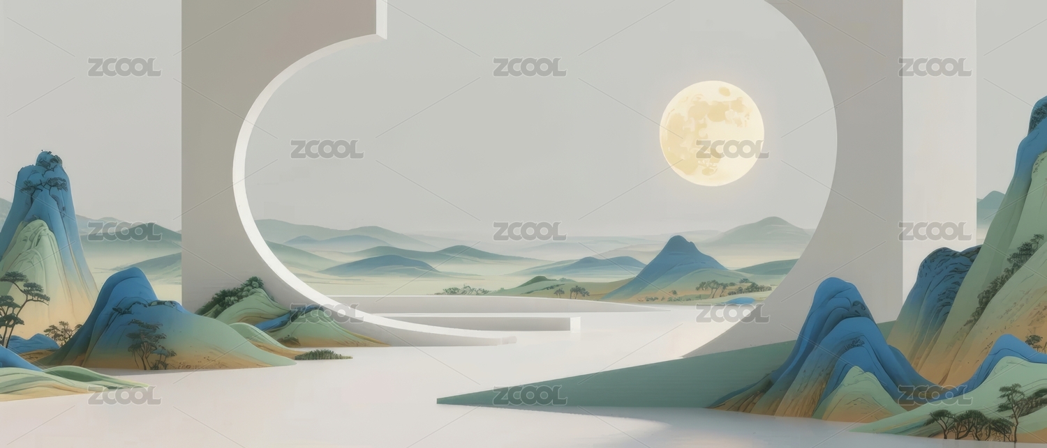 新中式前卫立体山水抽象背景
