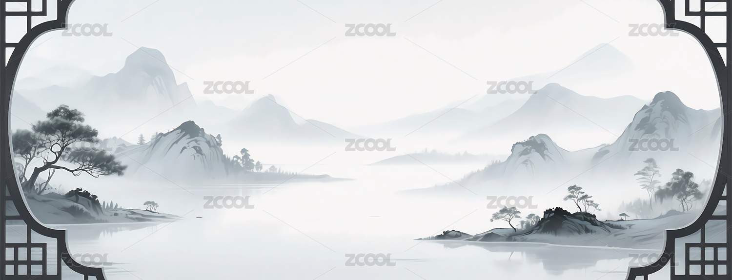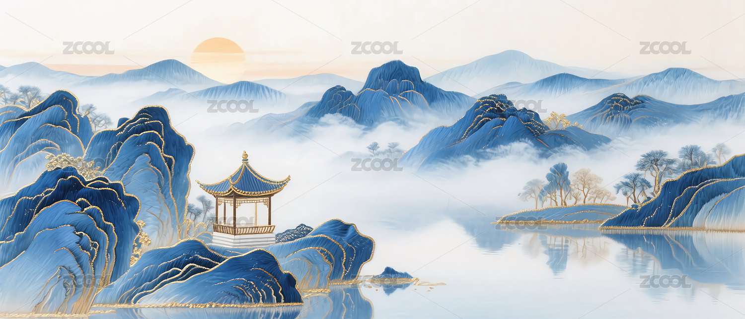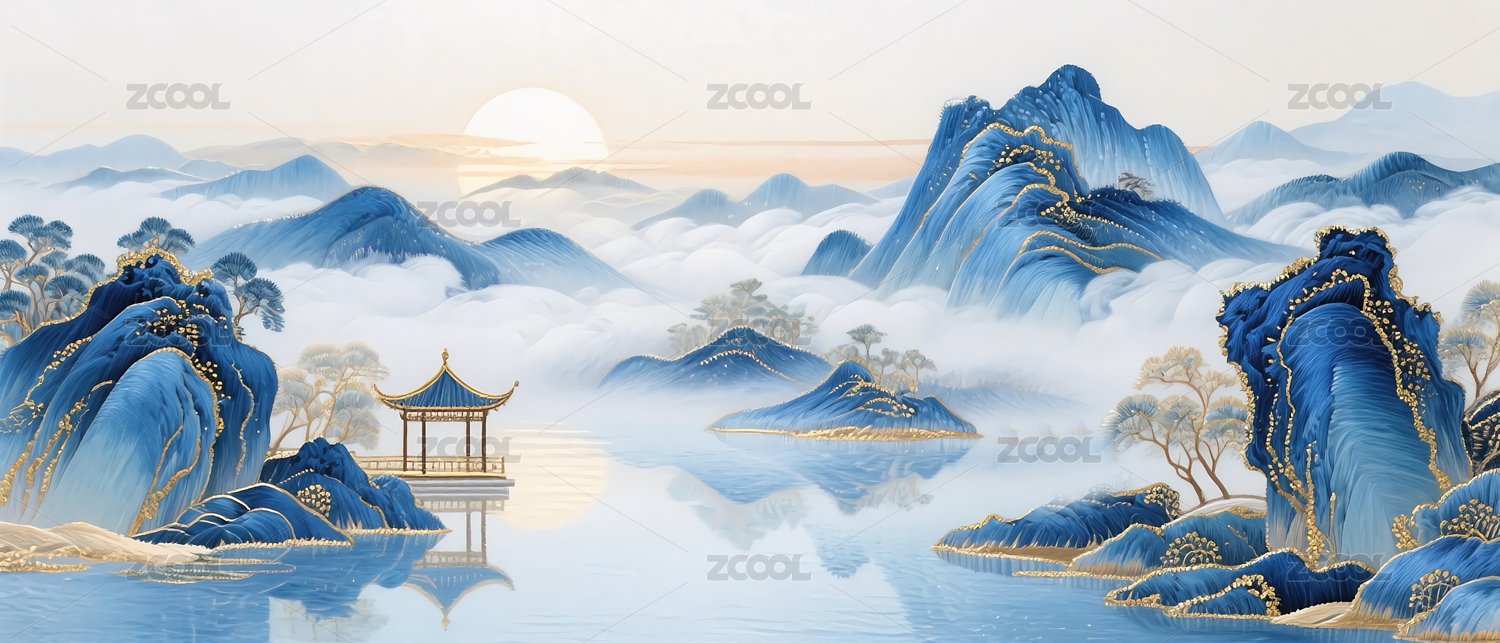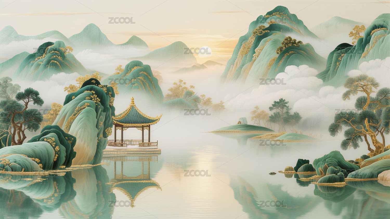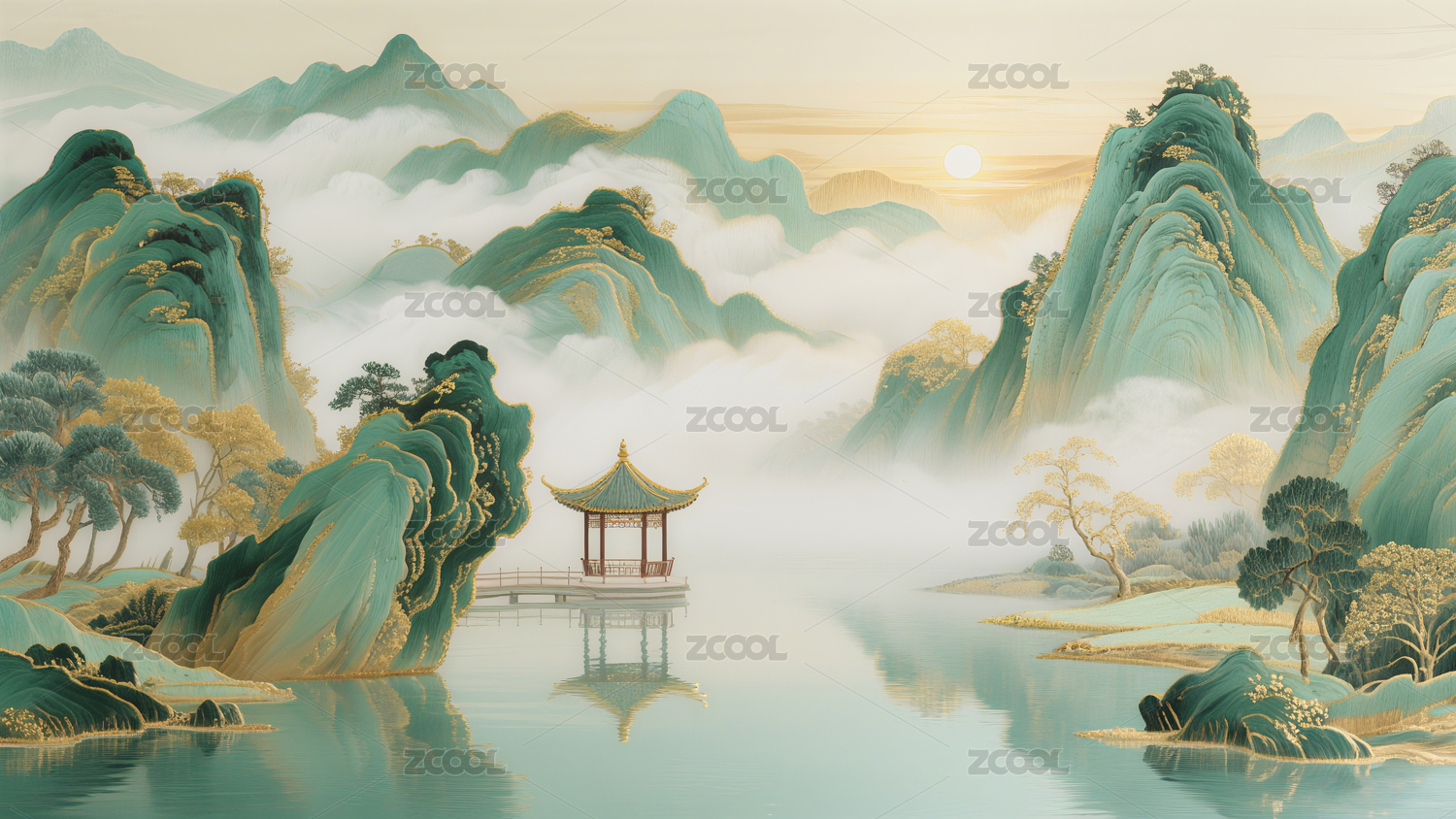新国风古风国潮青绿山水画水墨传统背景壁纸