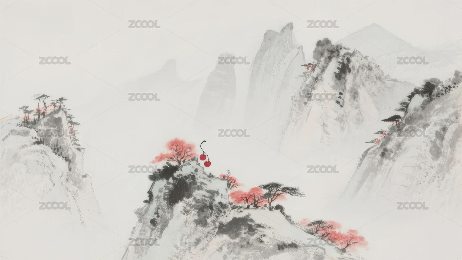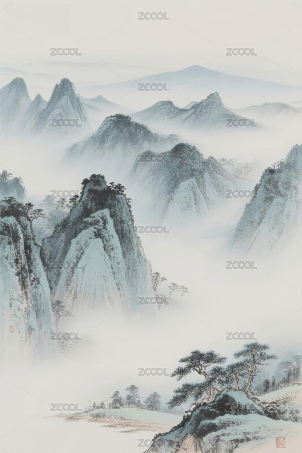 自然,风景,宁静,清新,山峰,树木,远山,水墨,传统,幽远