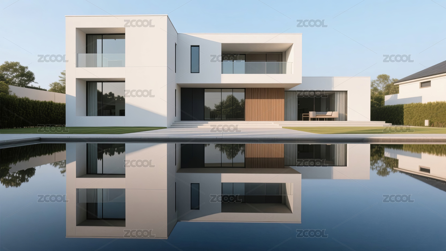 现代别墅建筑泳池倒影