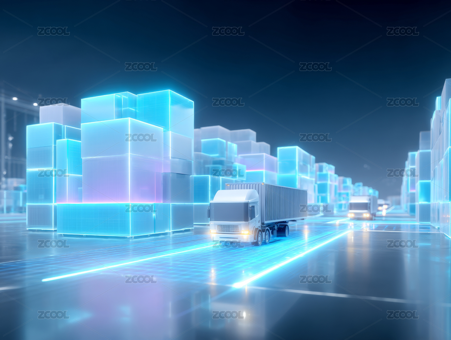 未来都市里的卡车运输场景