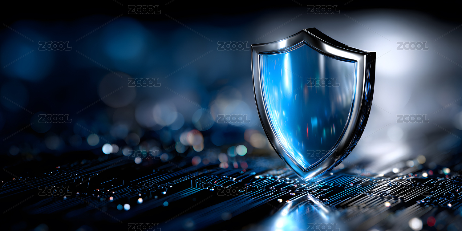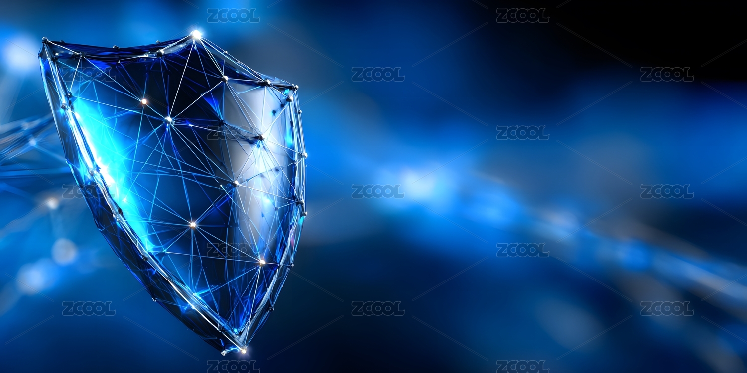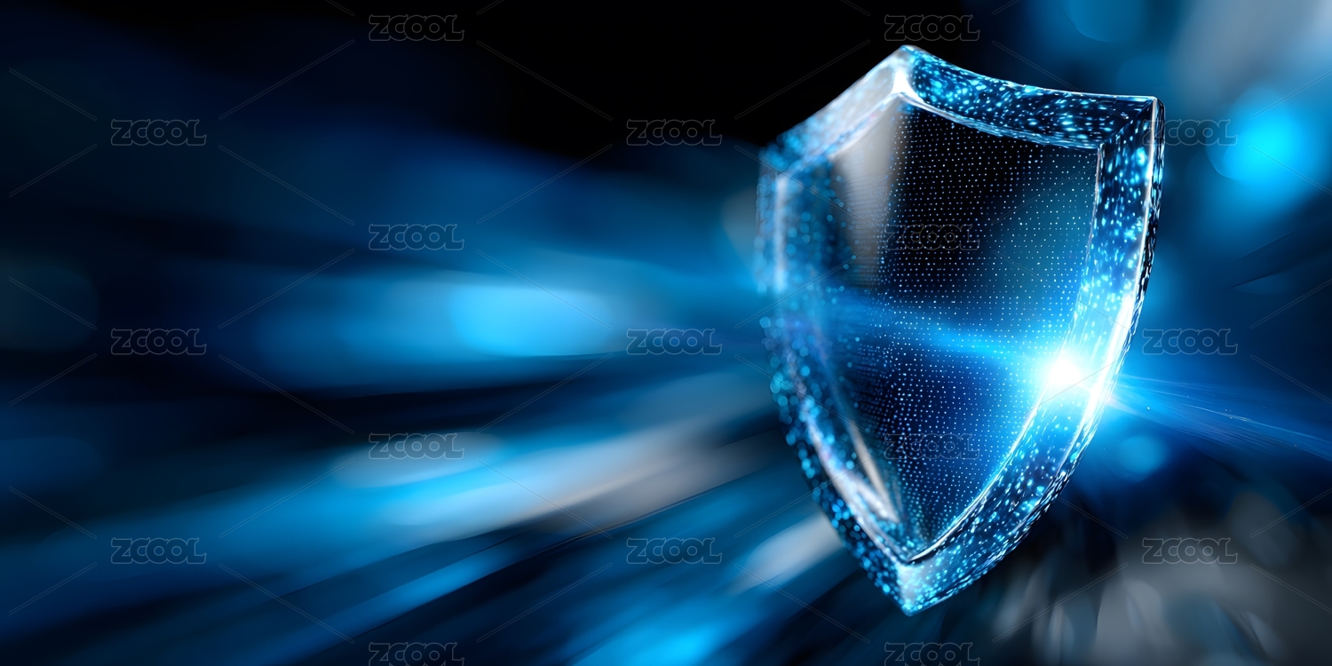 蓝色的科技盾牌,互联网金融财产安全插画保