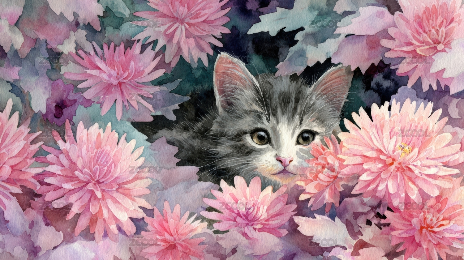 猫咪与花朵的艺术作品