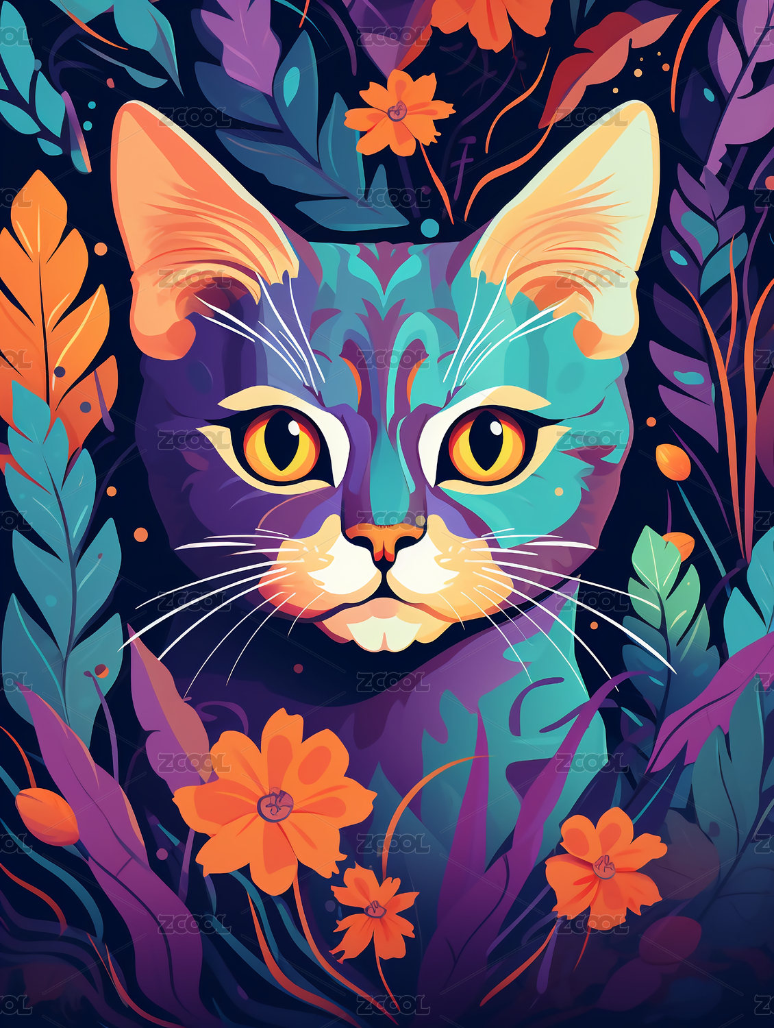 动物,雨林,绘画,插图,狩猎,花,气候,背景,野生,猫科