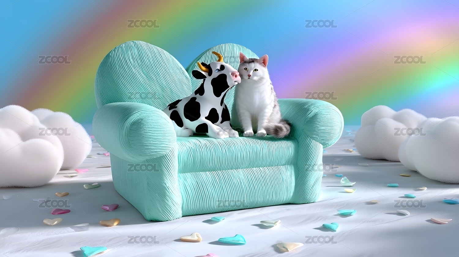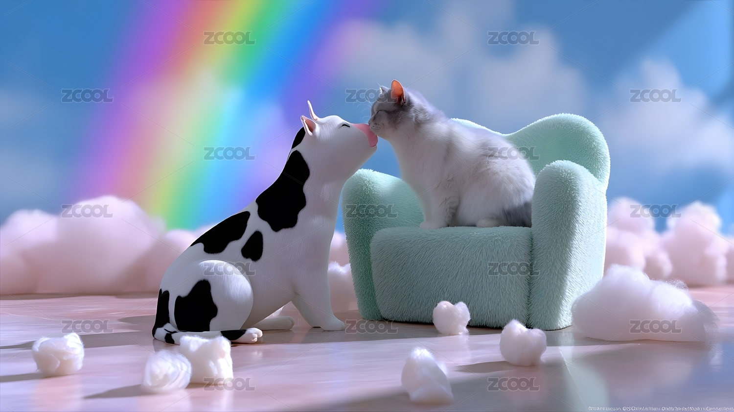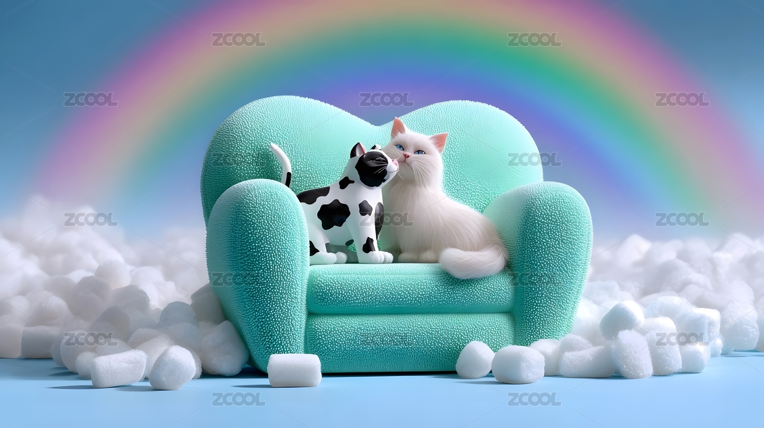 情人节,白色,背景,可爱,猫咪,毛绒,云朵,柔软,温馨,室内