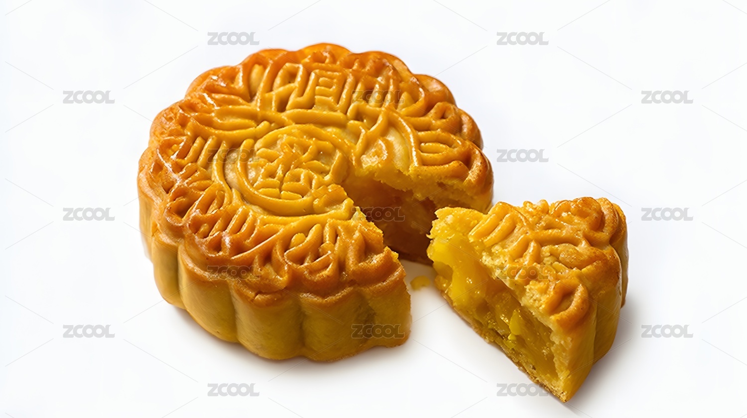 中秋传统花纹月饼切开露馅3D中秋节插画