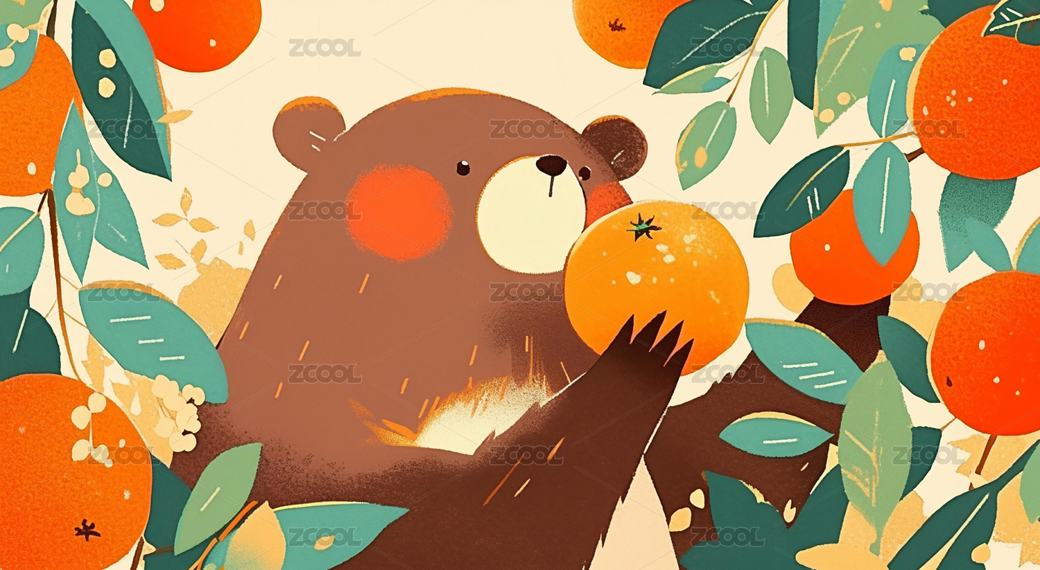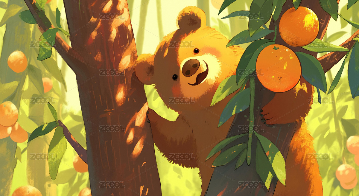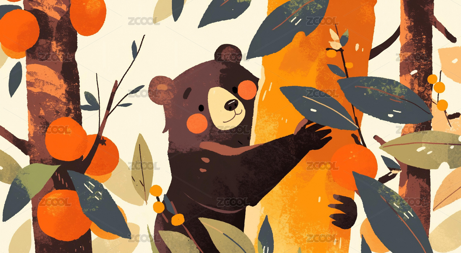 熊爸爸和熊宝宝的森林嬉戏卡通插画