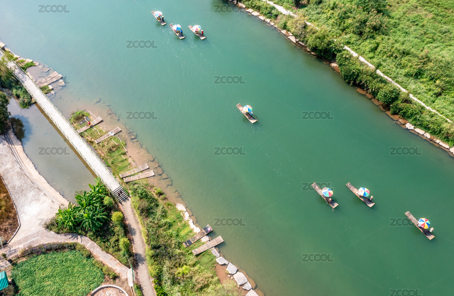 广西桂林阳朔遇龙河上竹筏漂流风光
