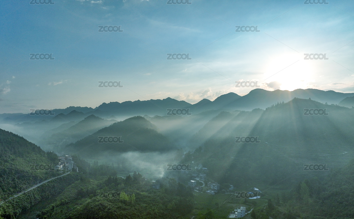 夏阳初露薄雾扮美乡村