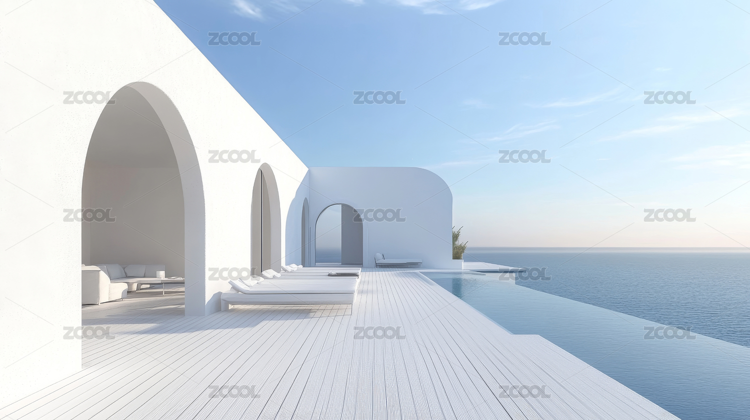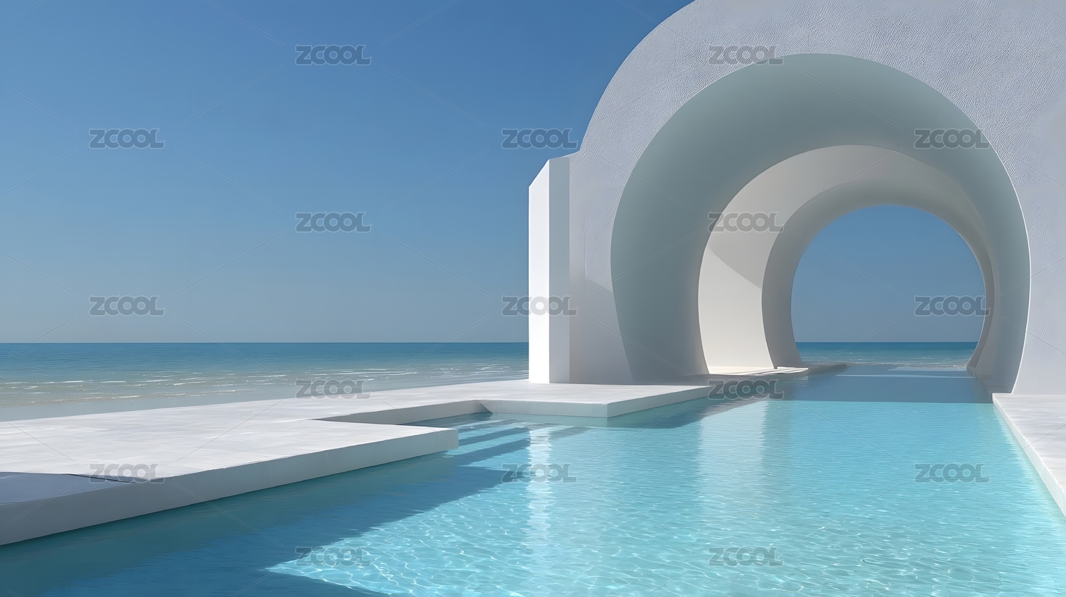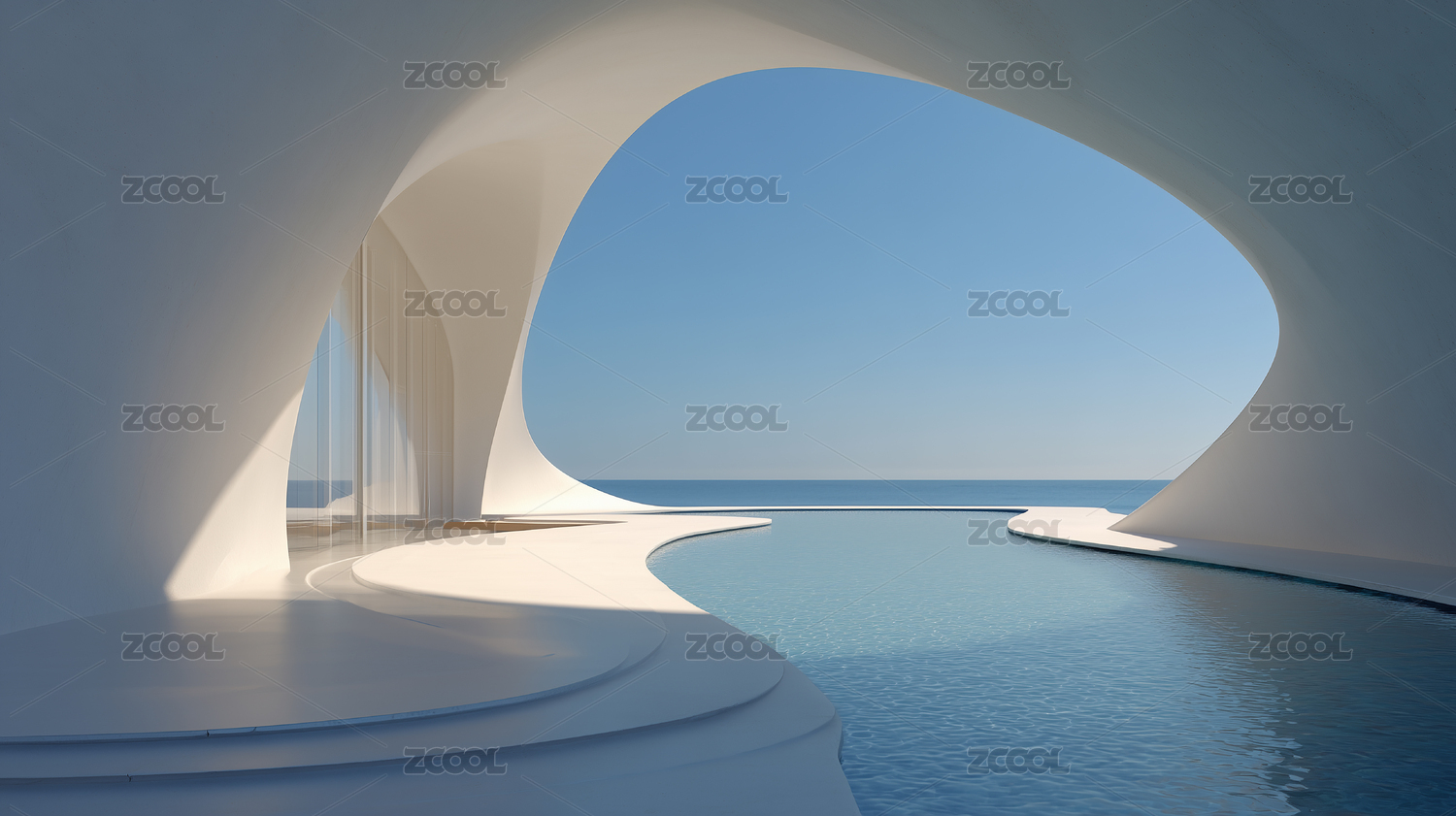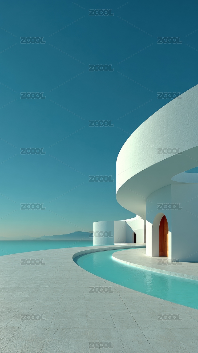 海边曲线泳池与白色建筑