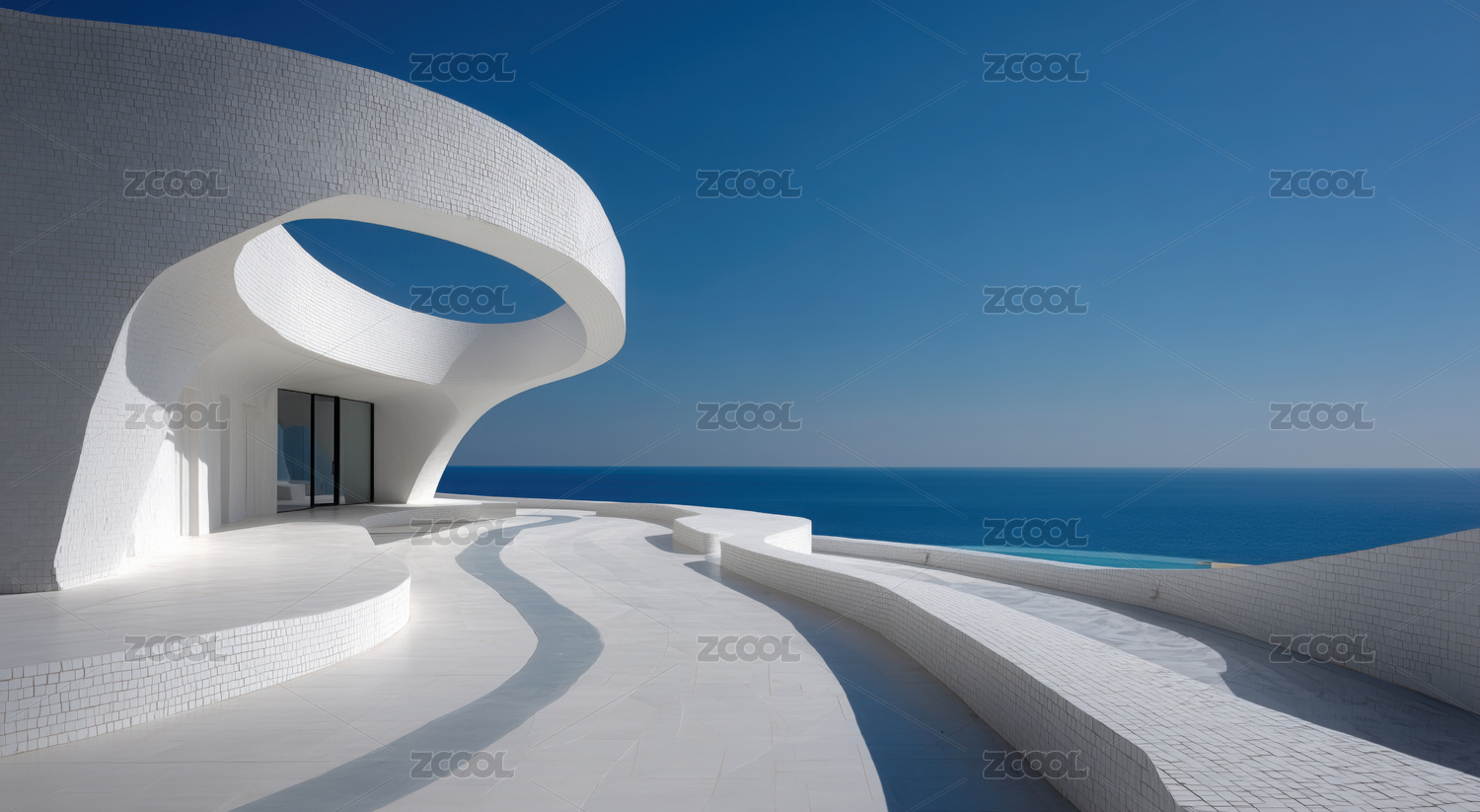 白色流线建筑临海景观