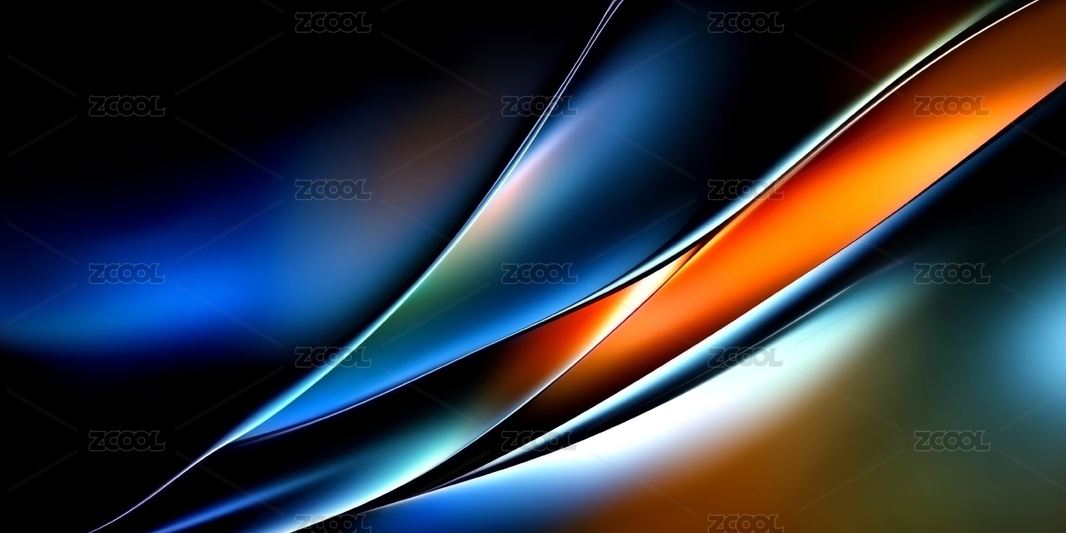 蓝橙色彩交织成流动线条呈现艺术动感视觉