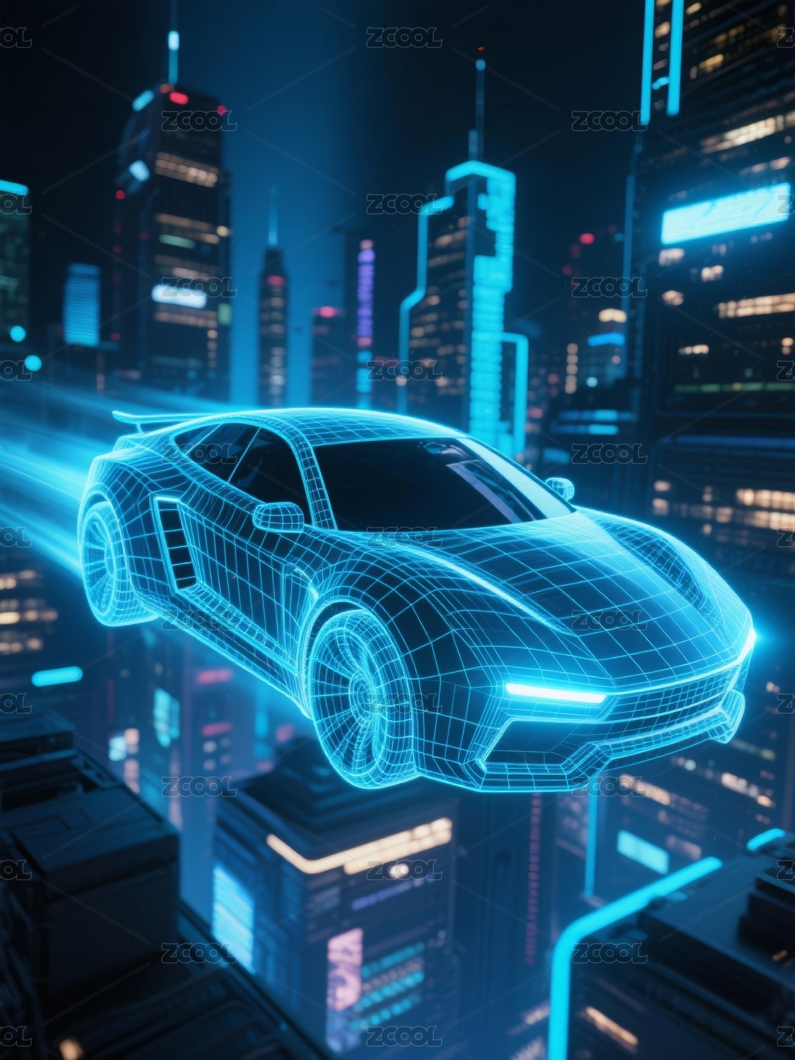 未来感汽车线框模型城市背景