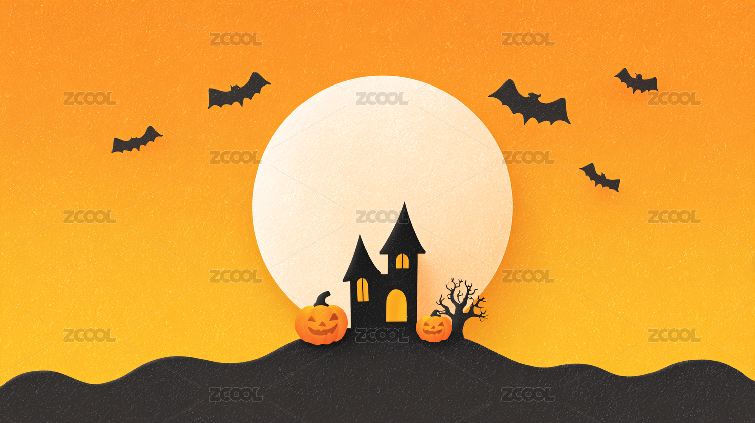 万圣节,城堡,南瓜灯,节日,蝙蝠,月亮,卡通,可爱,装饰,幽灵
