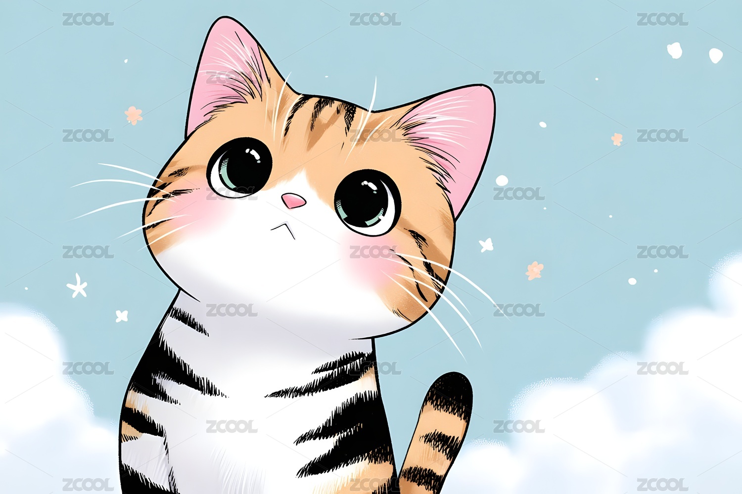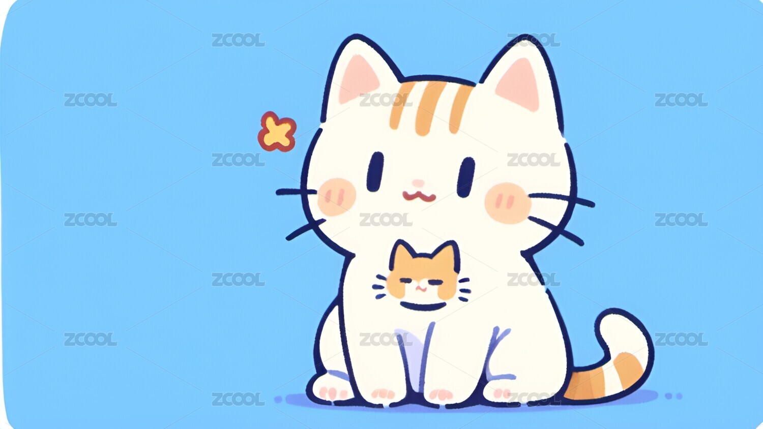卡通,猫咪,向日葵,小动物,萌宠,浅绿色背景,可爱,花卉,插画