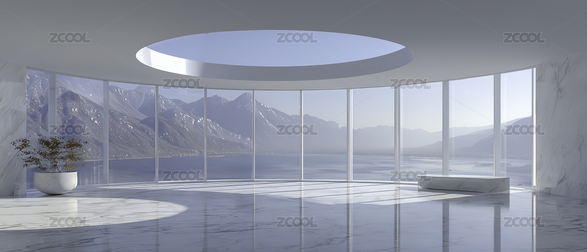 建筑,房间,圆形,白色,玻璃,窗户,天窗,全景,室内,现代