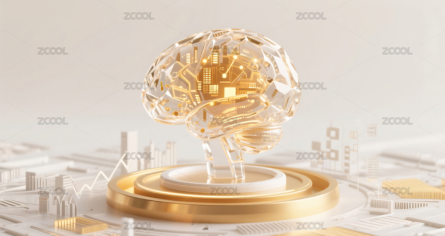 金色,商务,科技,未来,人工智能,大脑,插画,背景,壁纸,透明