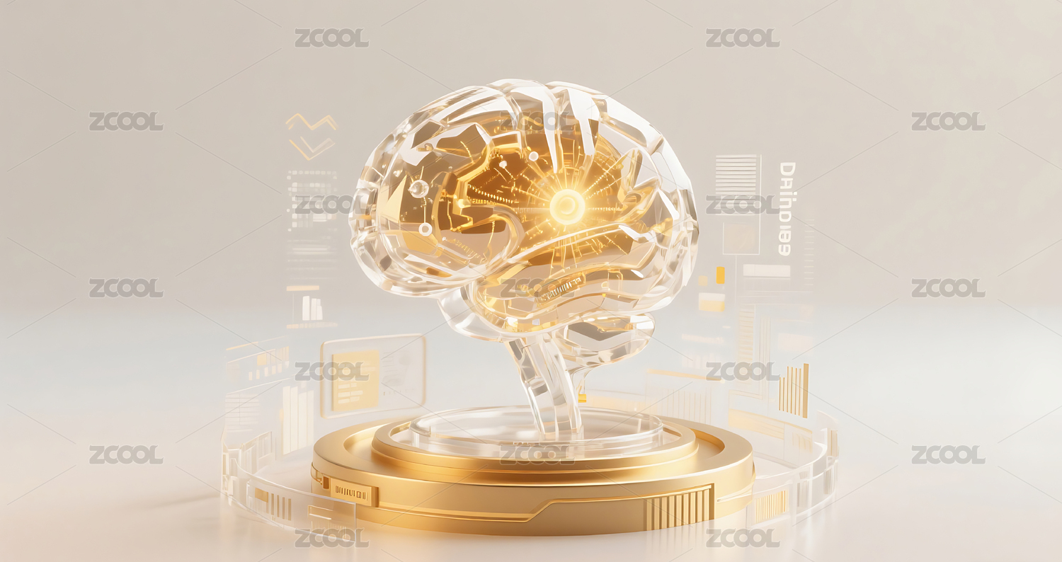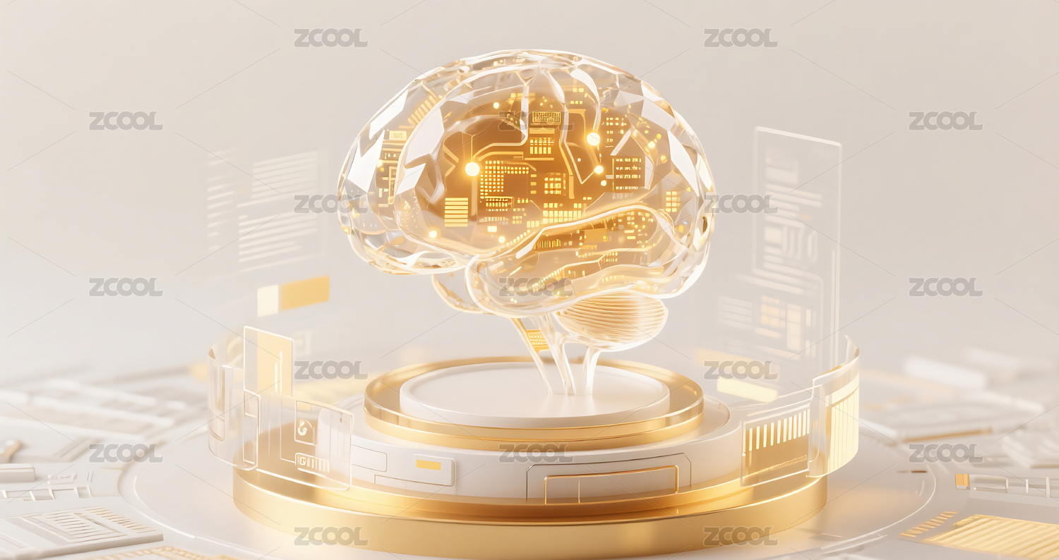 金色,商务,科技,未来,人工智能,大脑,插画,背景,壁纸,透明