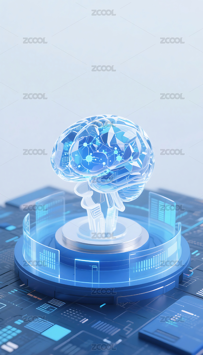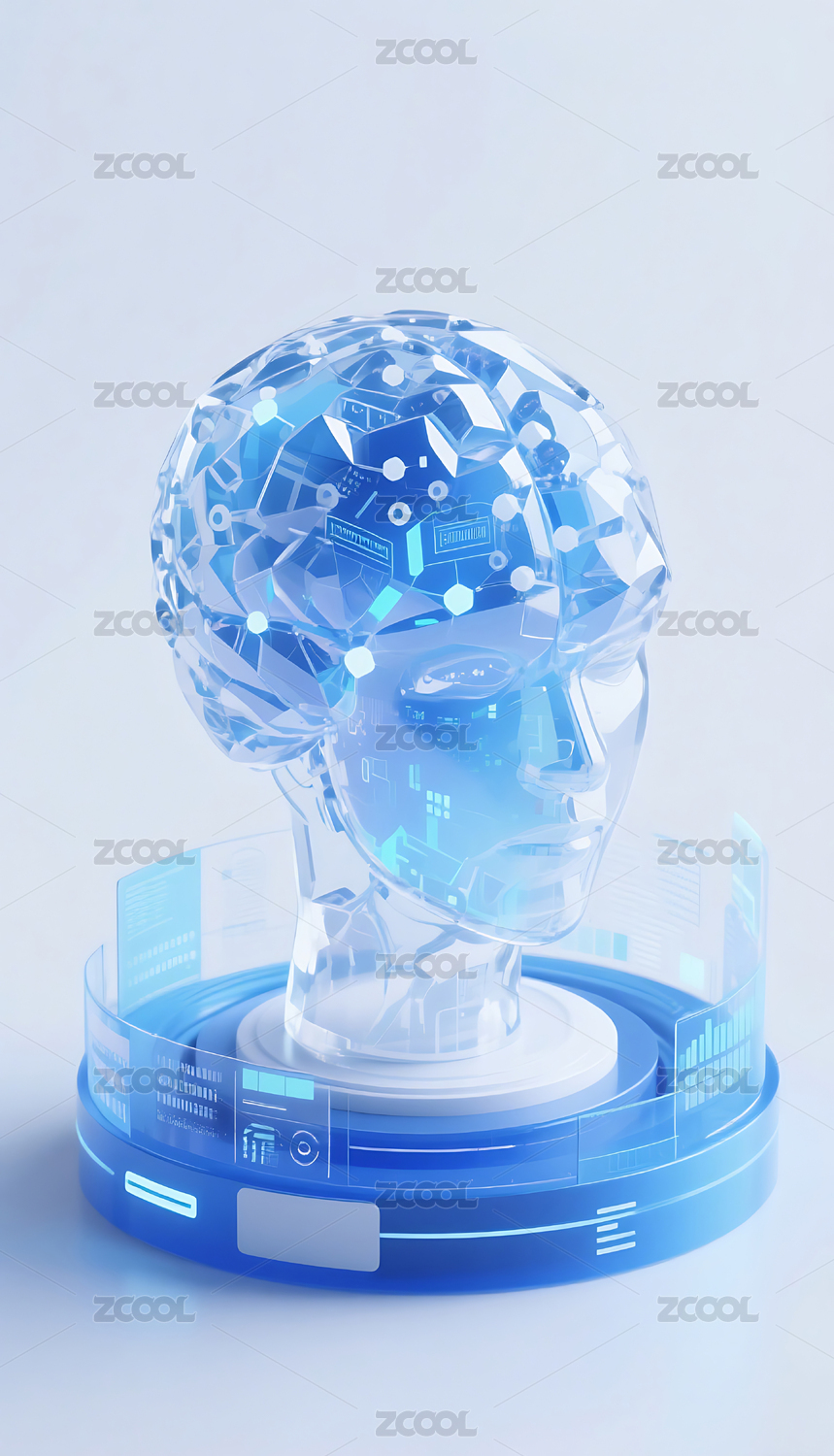蓝色透明人工智能数字数据大脑
