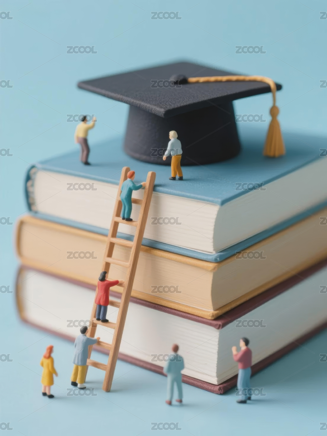 书本,堆叠,学习,教育,小雕像,迷你人物,场景,彩色,创意,趣味