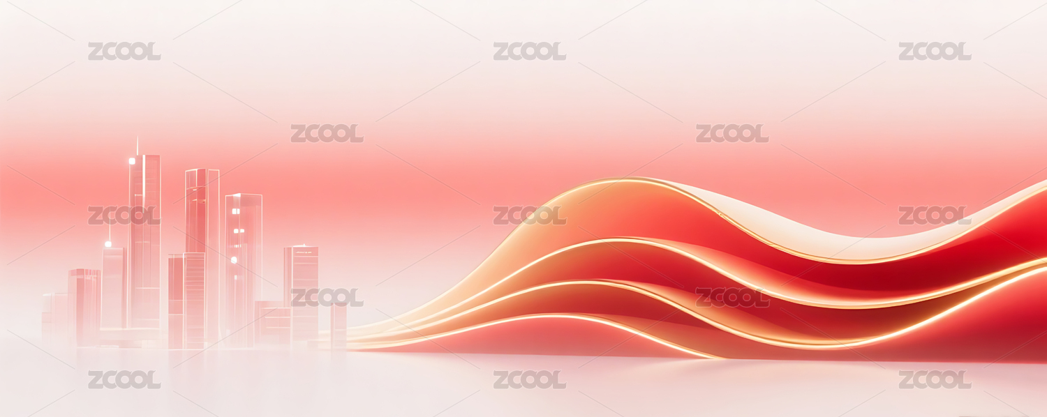 流畅的红金色渐变波浪线条玻璃城市建筑
