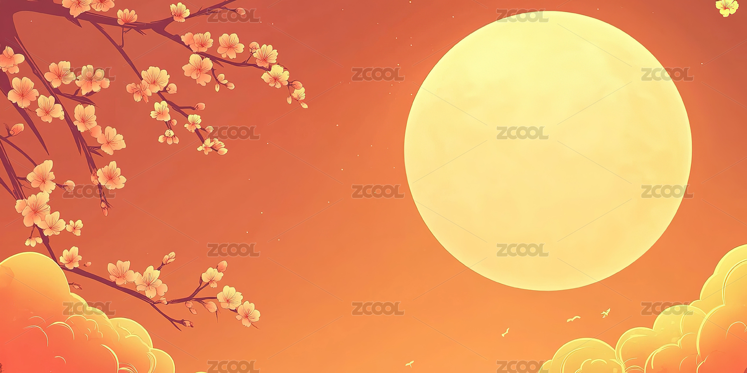 中秋节花朵和满月插画