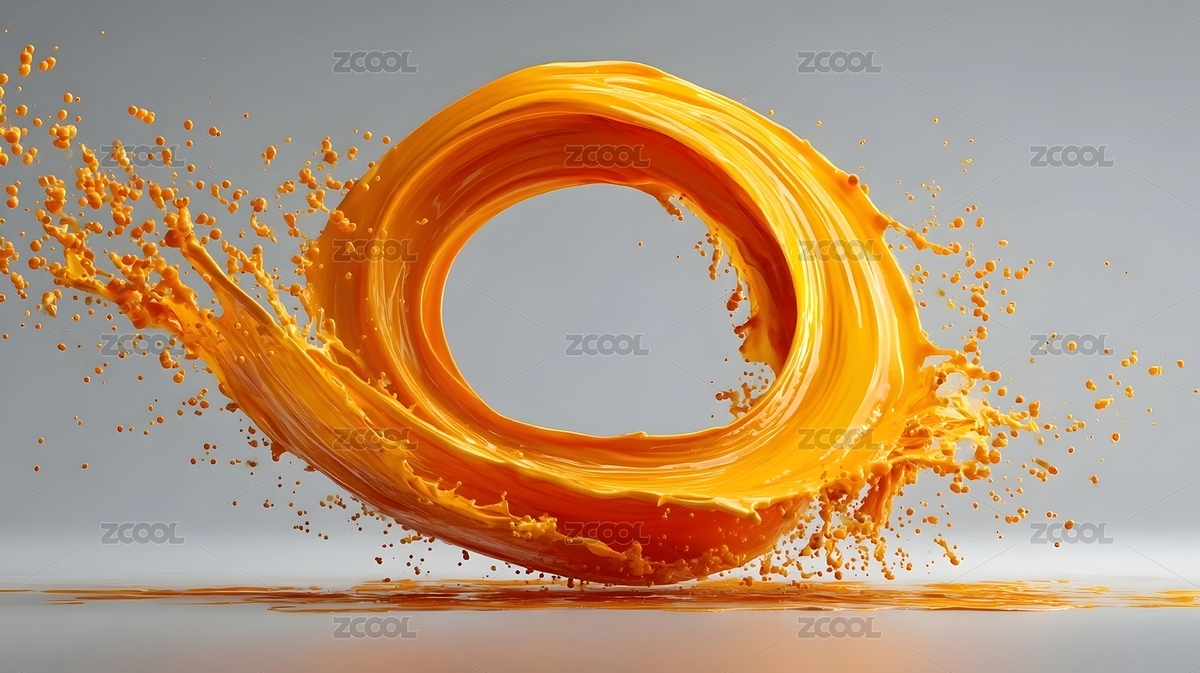 橙色液体旋转飞溅形成圆环