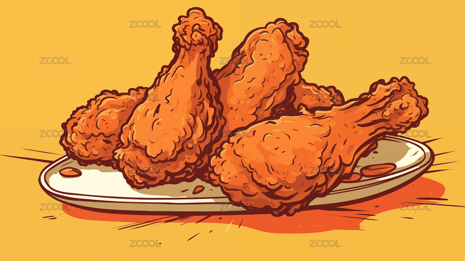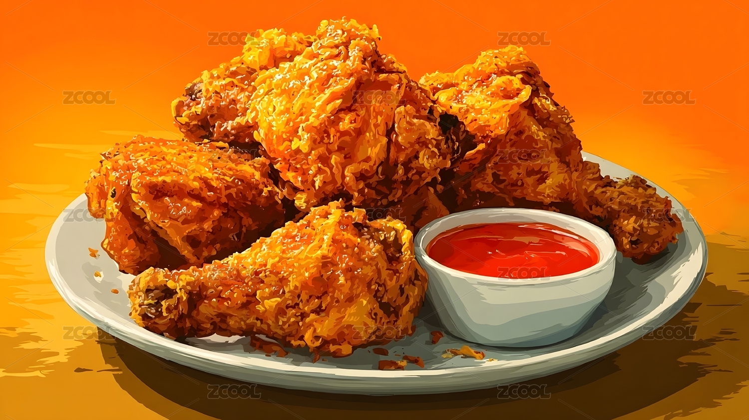 食物,盘子,西餐,美食,炸鸡,番茄酱,鸡腿,油炸,金黄,酥皮