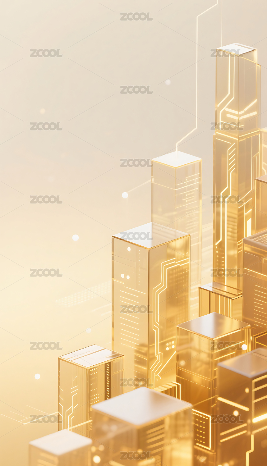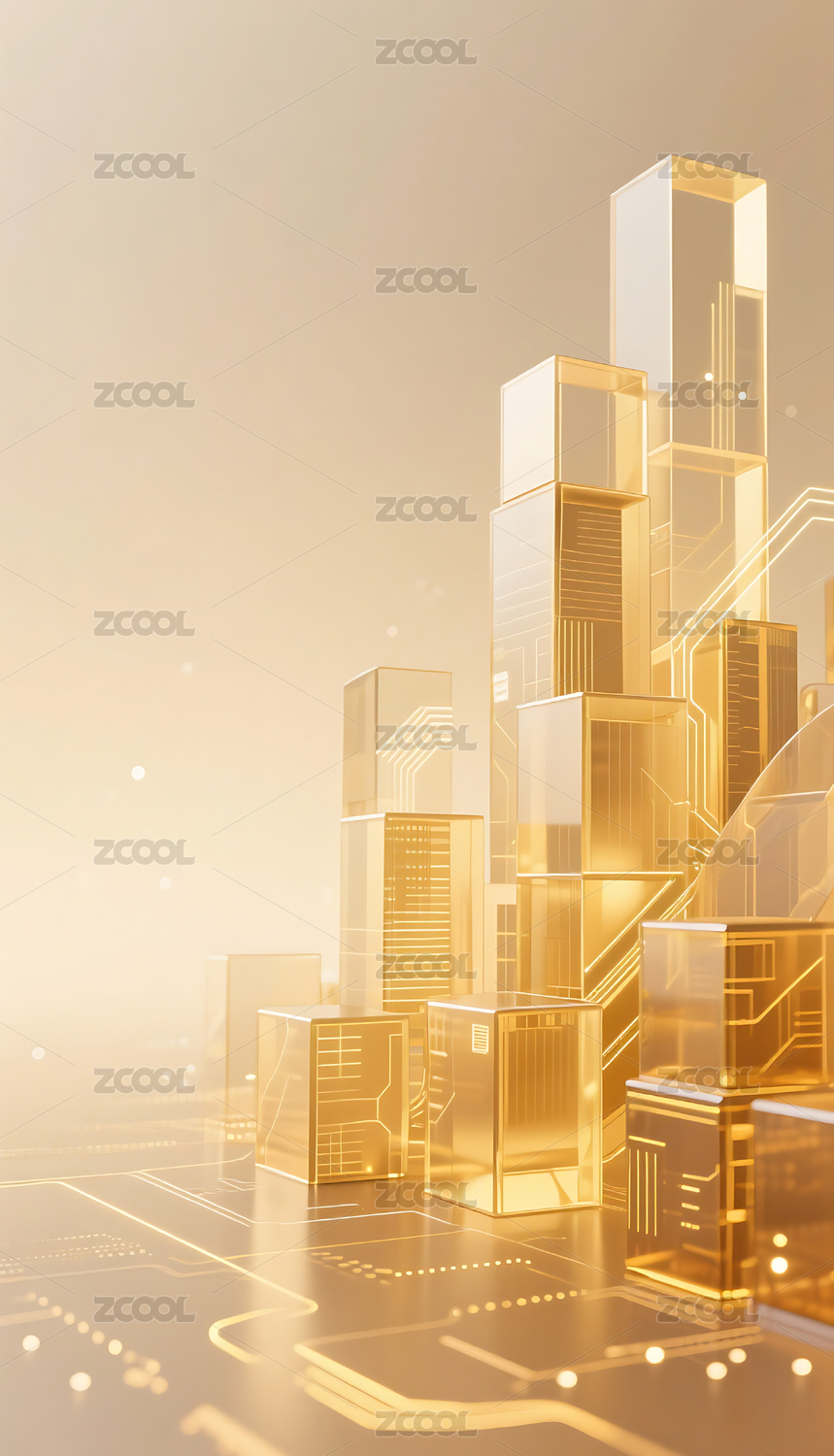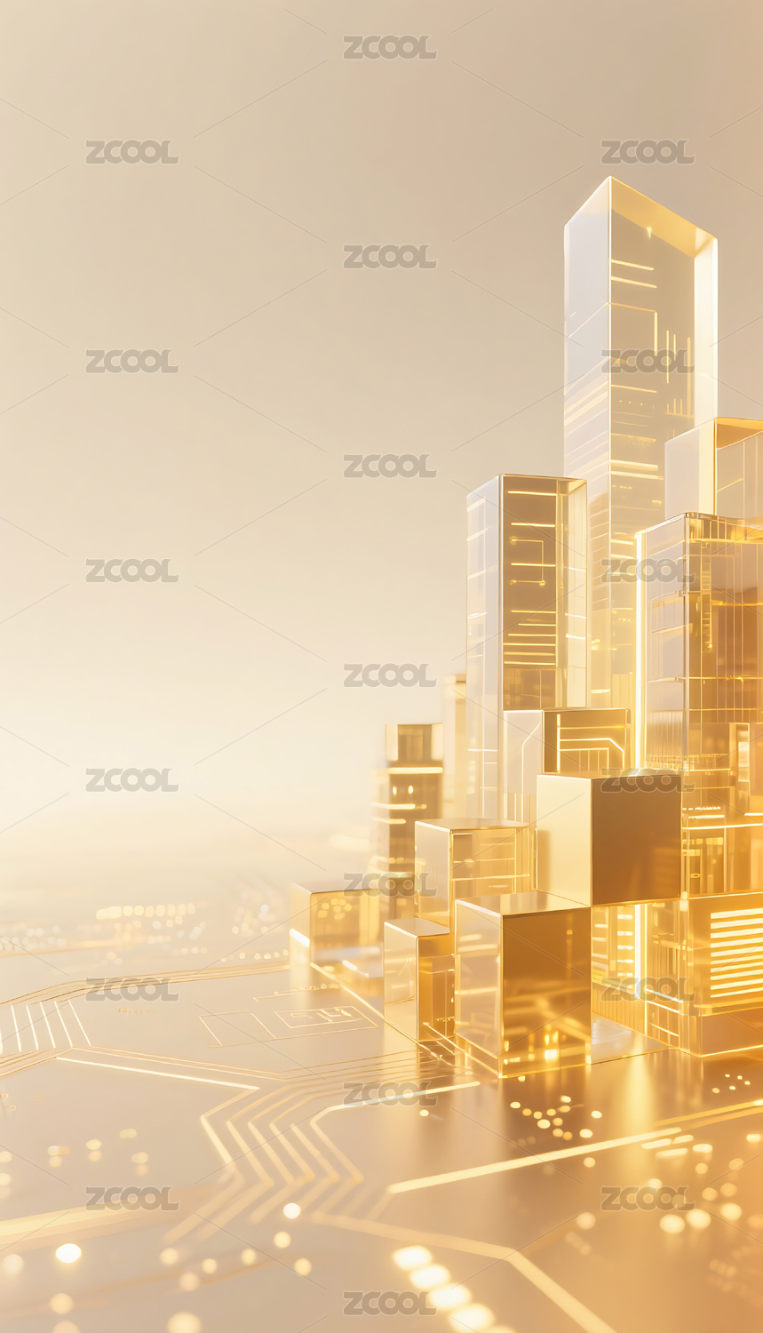 金色透明方块几何城市建筑背景