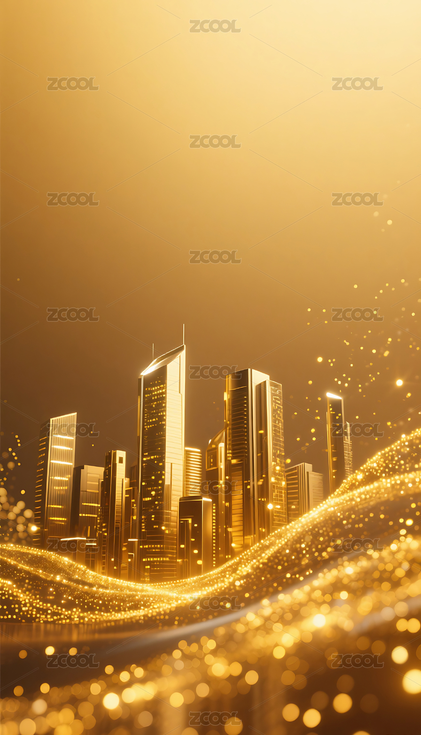 金色流动粒子金属城市建筑背景