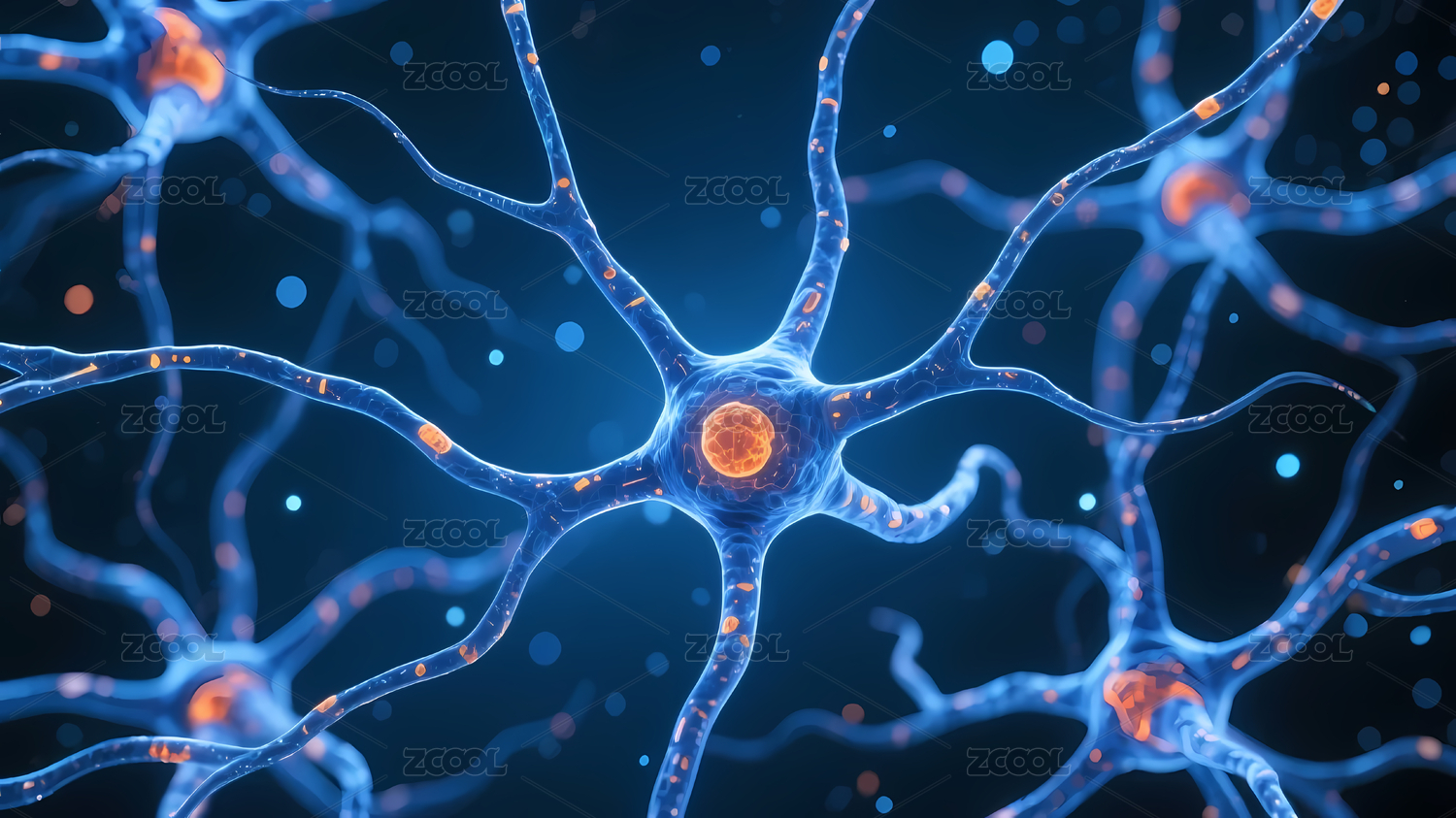 蓝色神经元黄色橙色光点