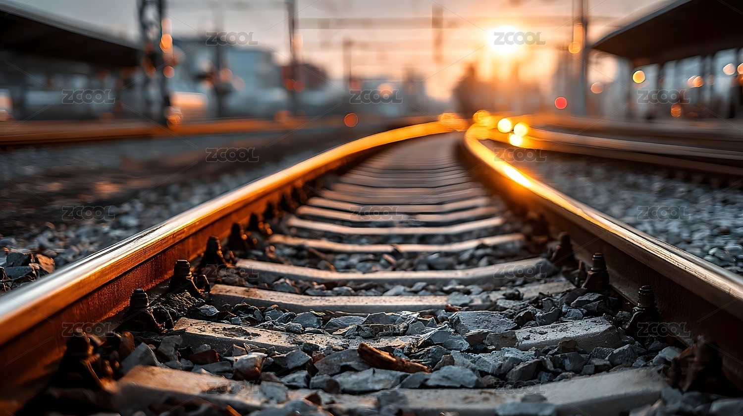 夕阳下的铁轨延伸远方