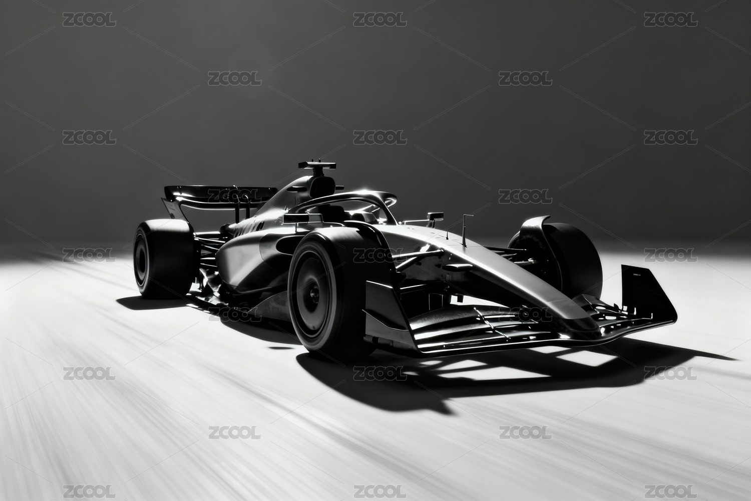 黑白光影下的赛车特写