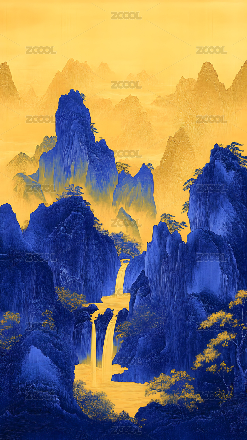 水墨画,高山,国潮,鎏金,华贵,节日,背景,商务,主视觉,渐变