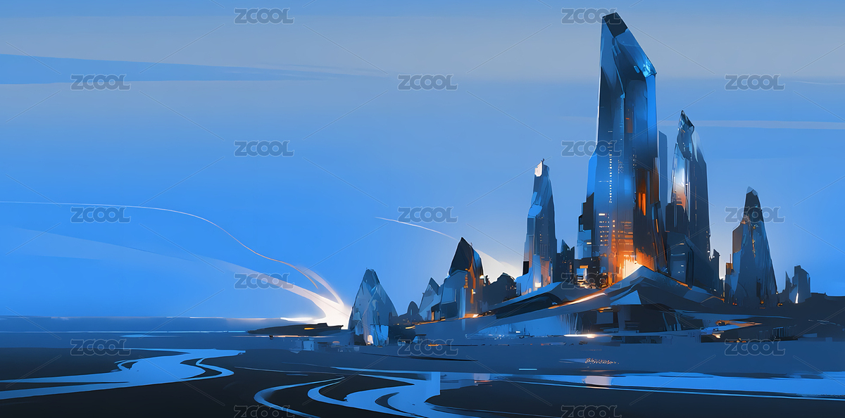冰块质感的冷色调城市建筑