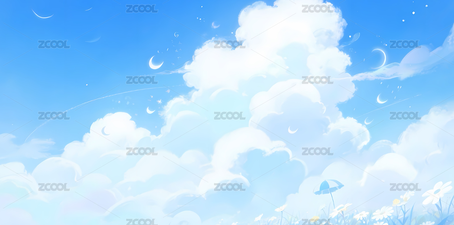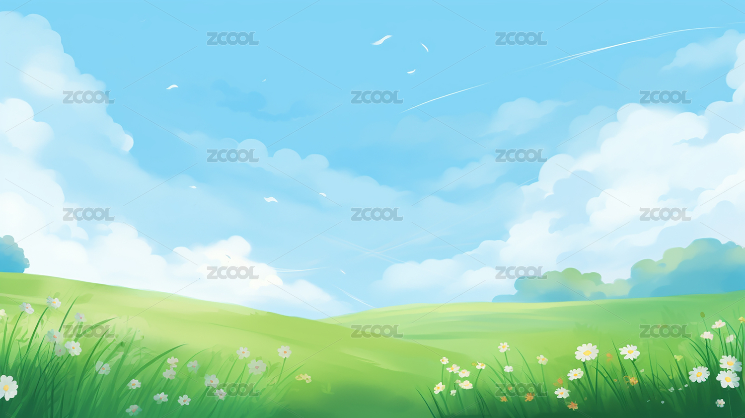 蓝天白云草地插画
