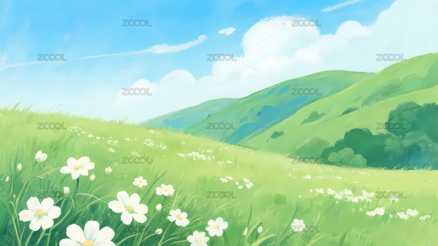 梦幻草地与柔和云朵