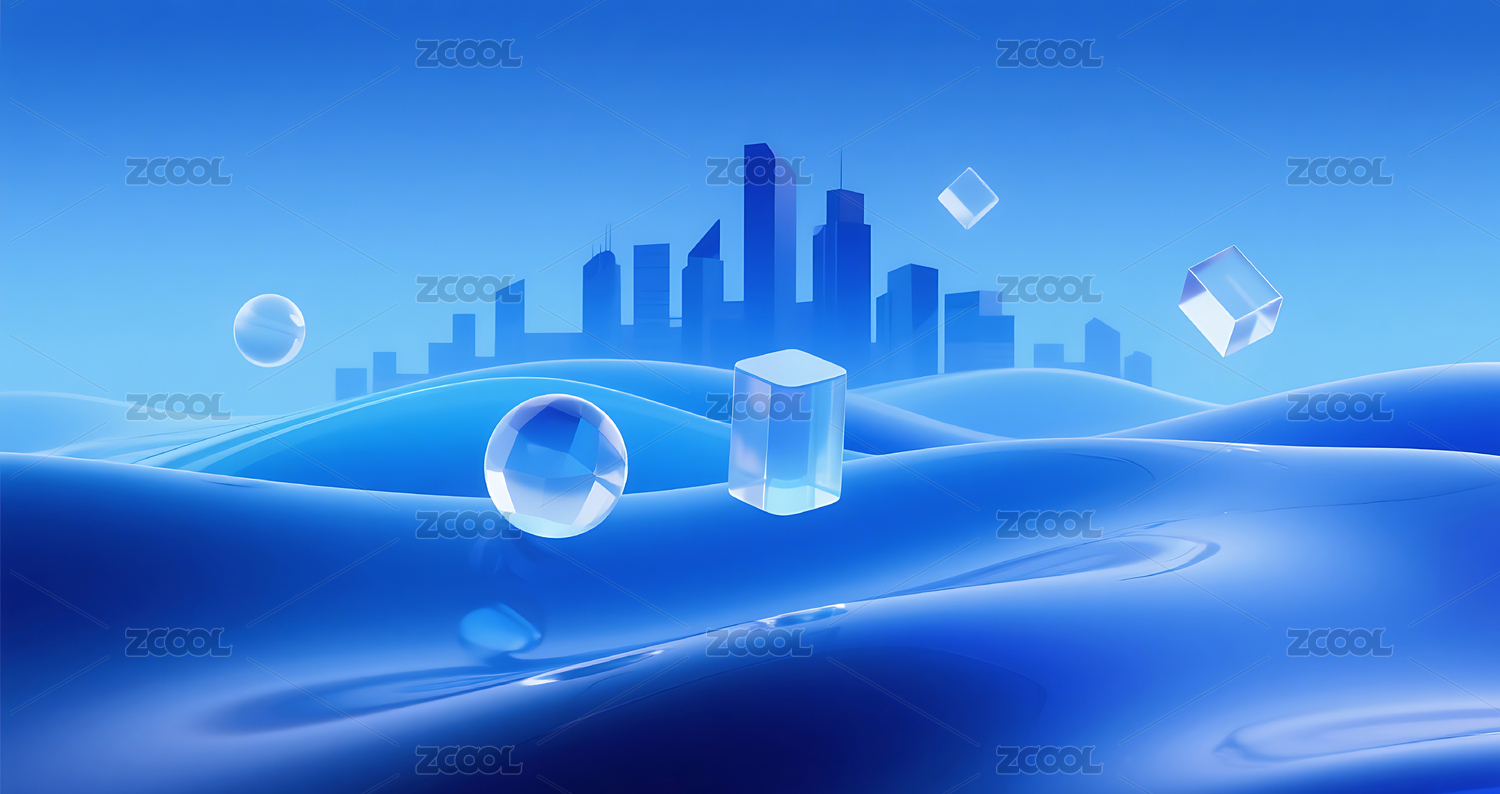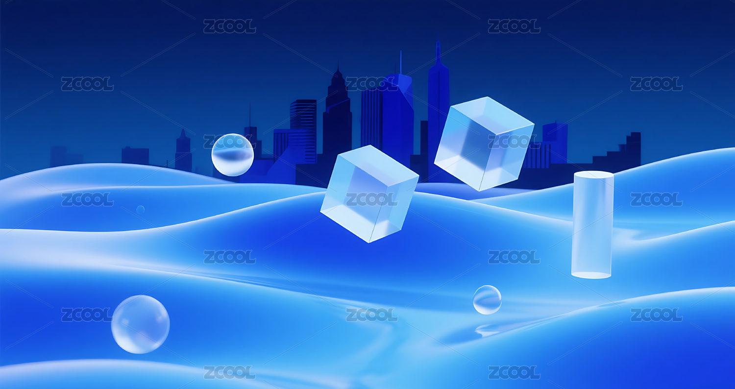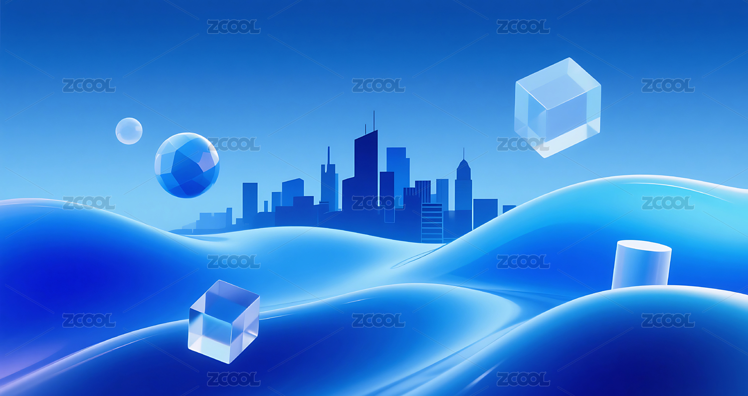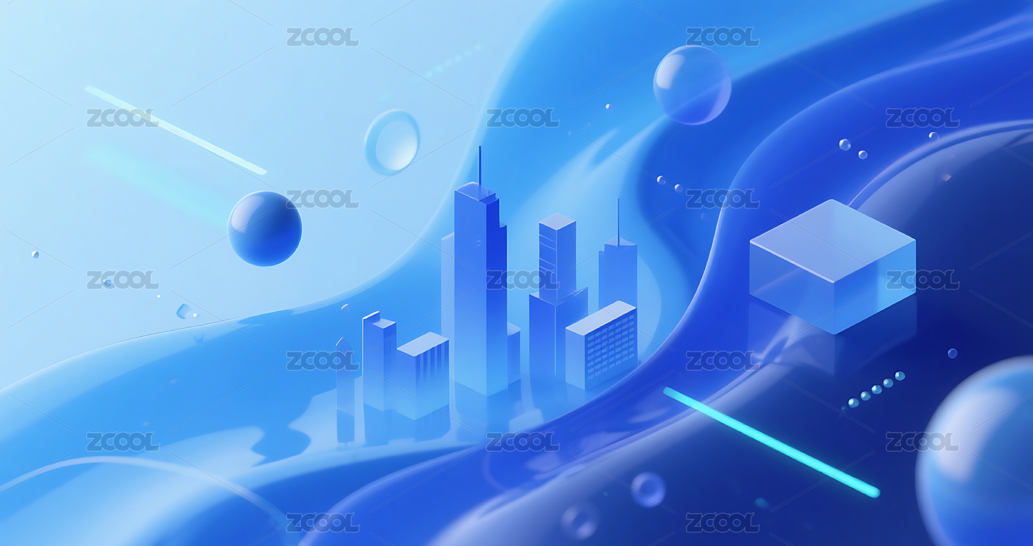 蓝色3D商务科技几何抽象城市漂浮物背景