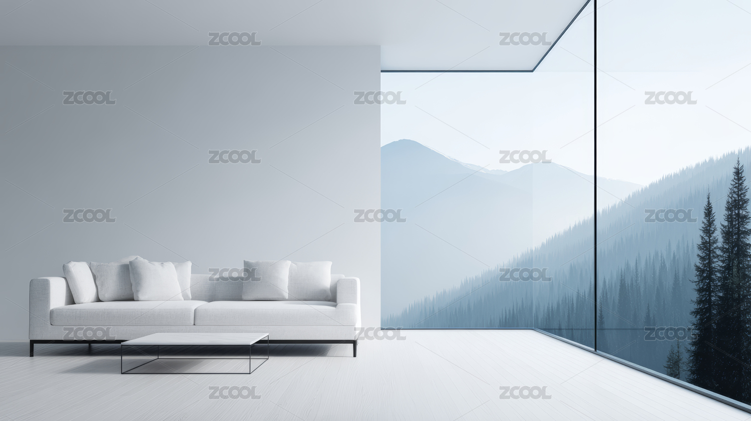 雪山,客厅,极简,现代,室内,设计,家居,沙发,落地窗,茶几