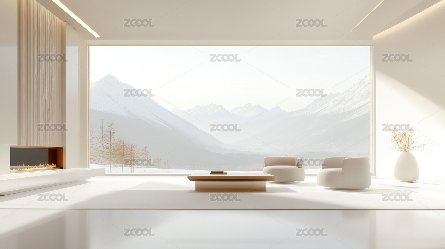 雪山下的极简主义客厅