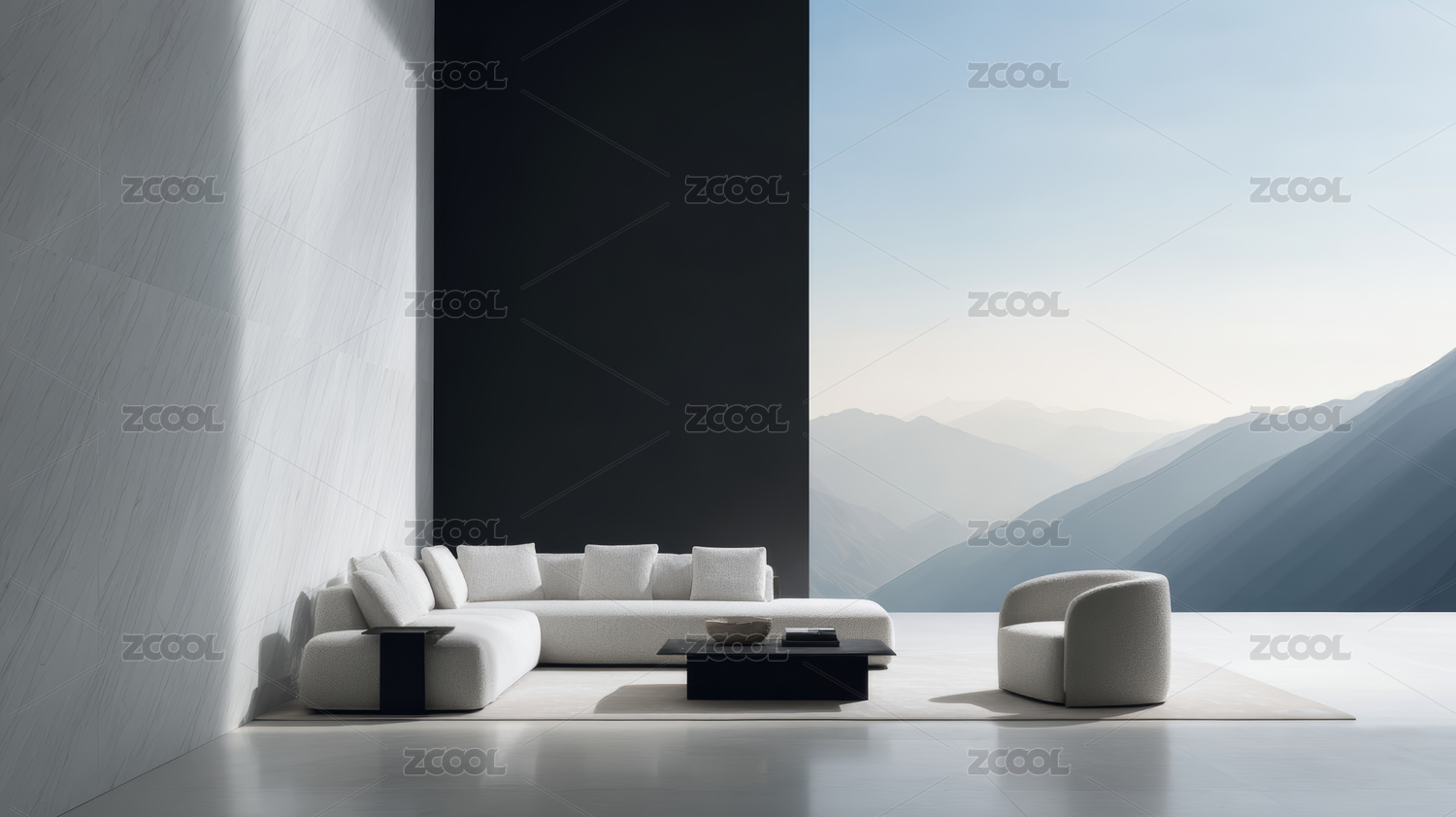 山景下的极简客厅