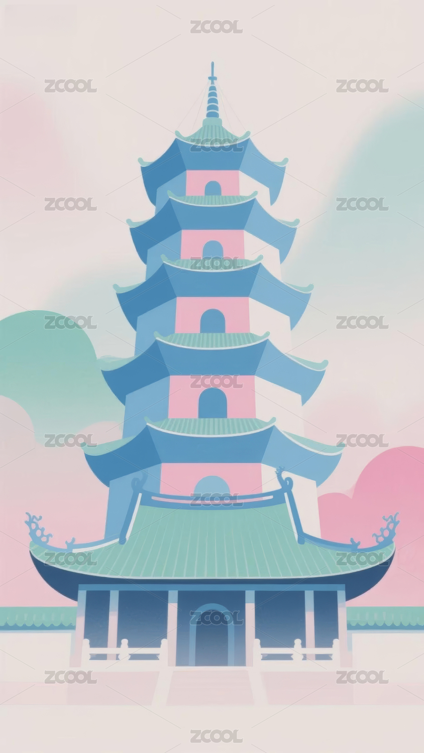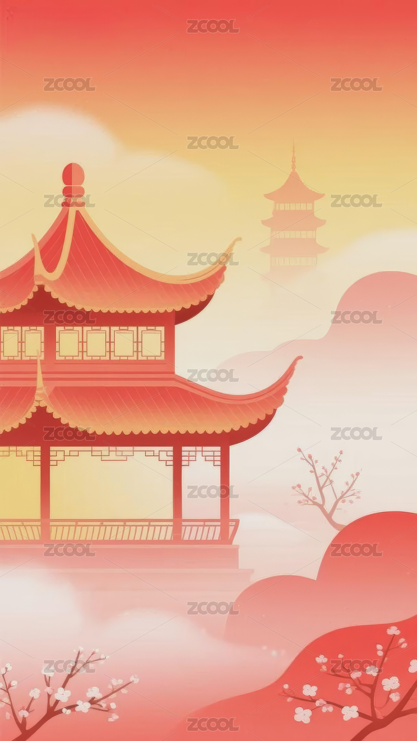 粉色系中式楼阁