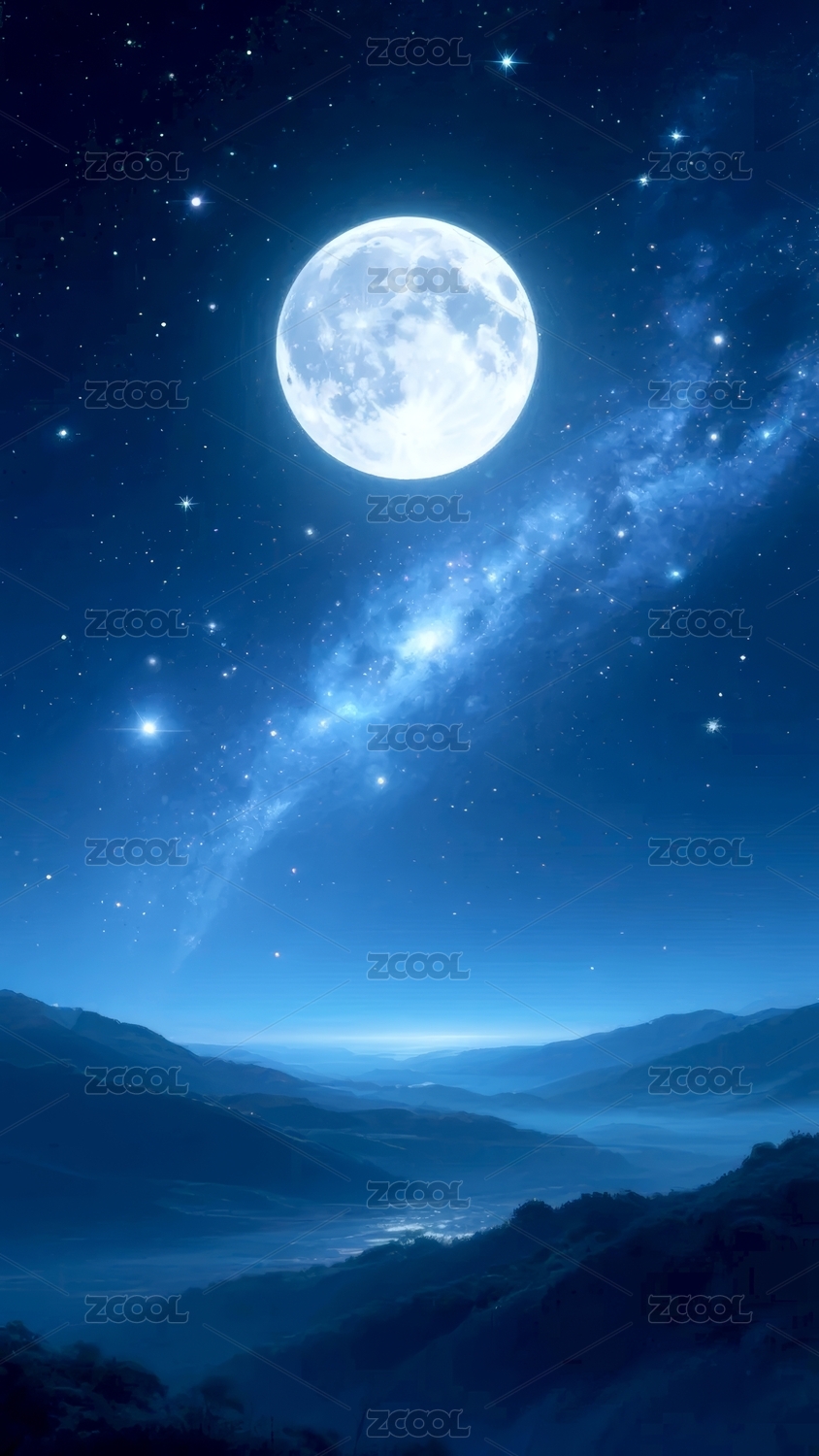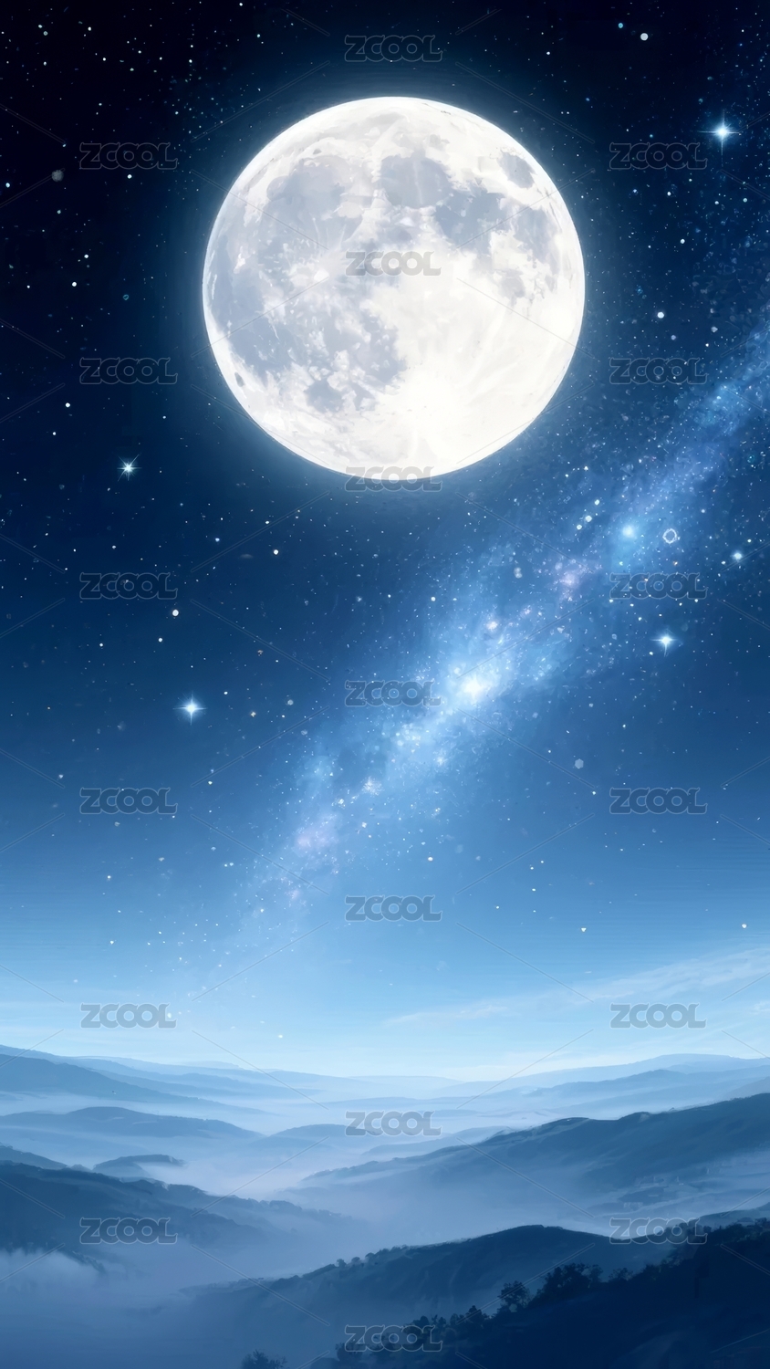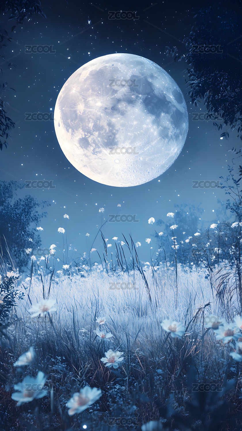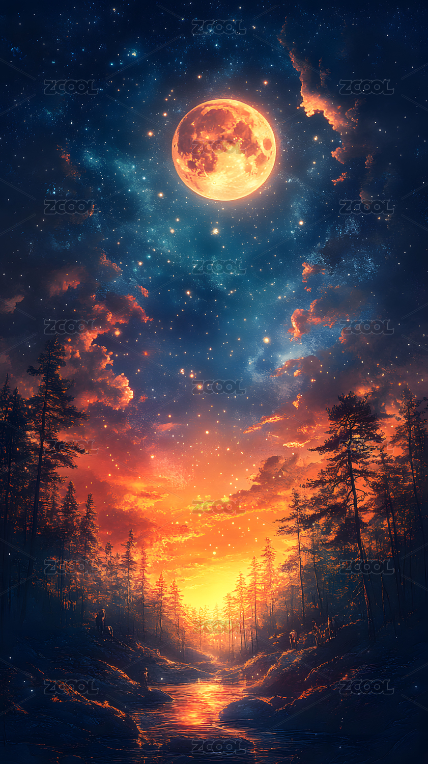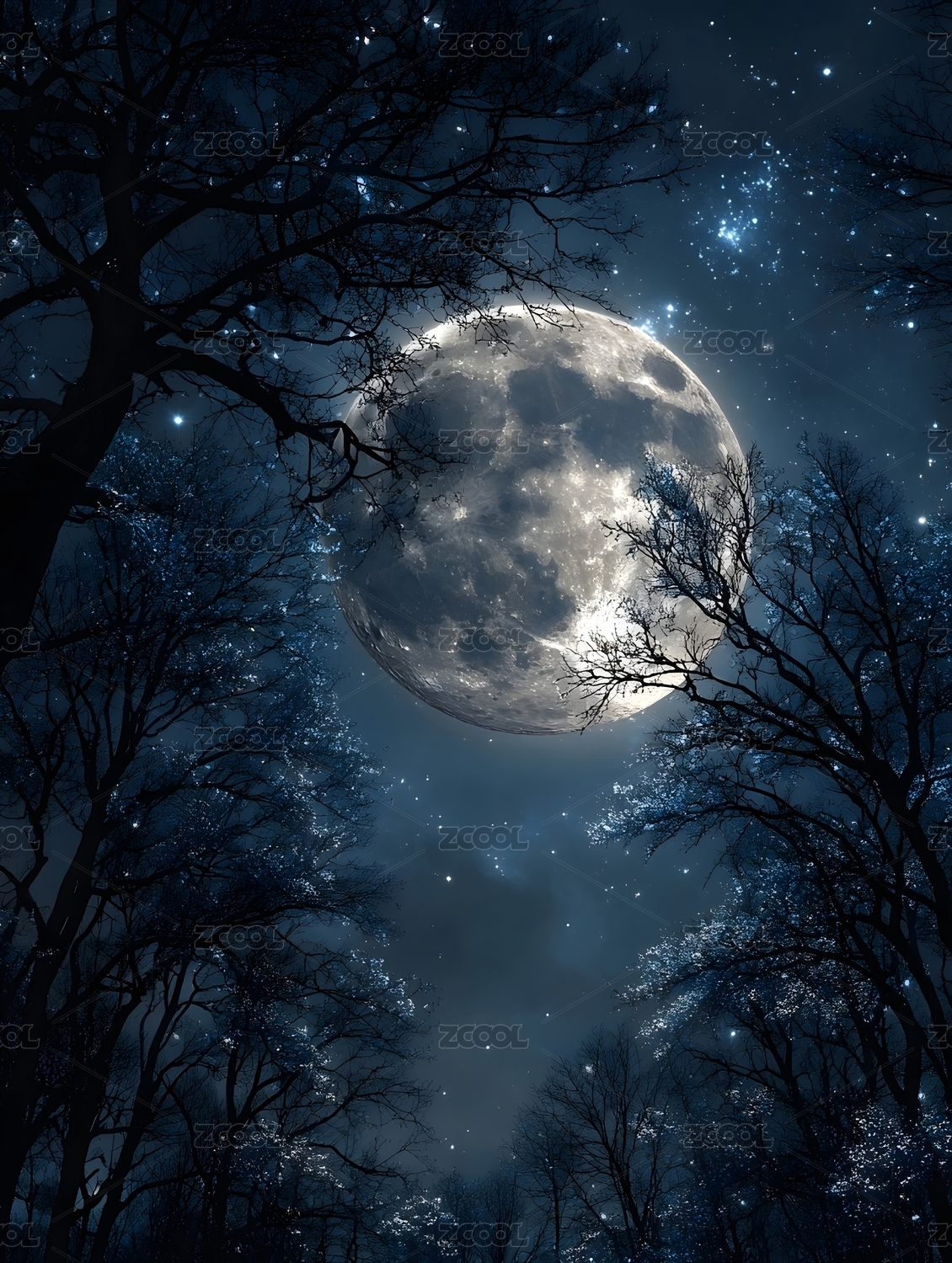 满月,星空,夜景,森林,树木,夜晚,宁静,唯美,自然,夜空