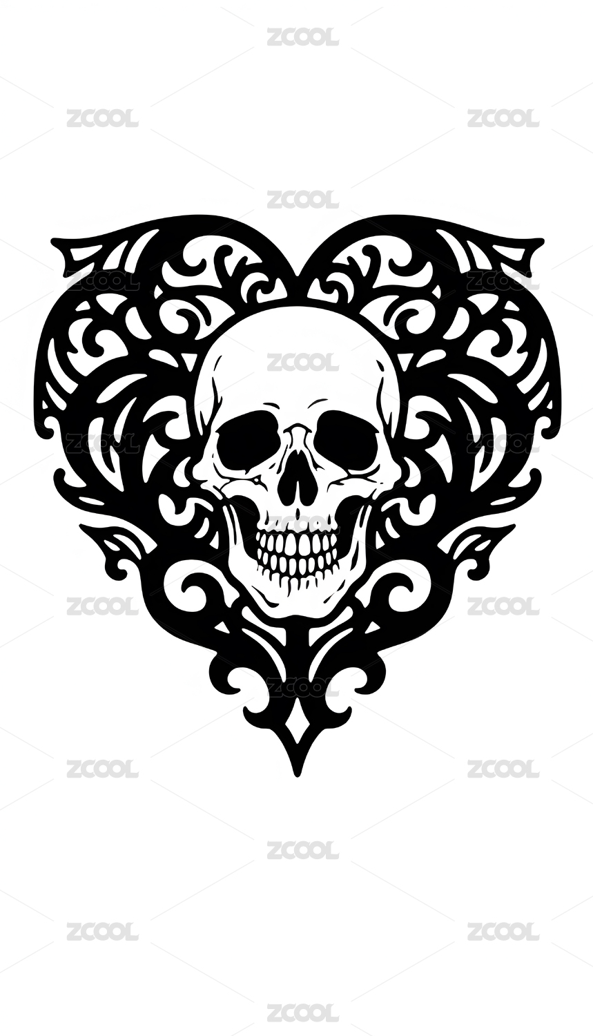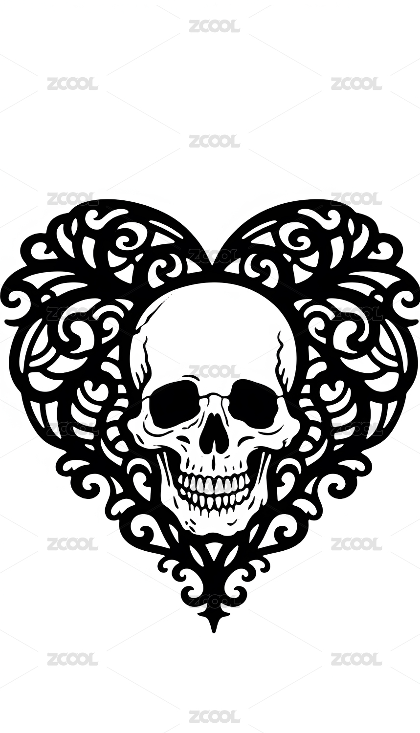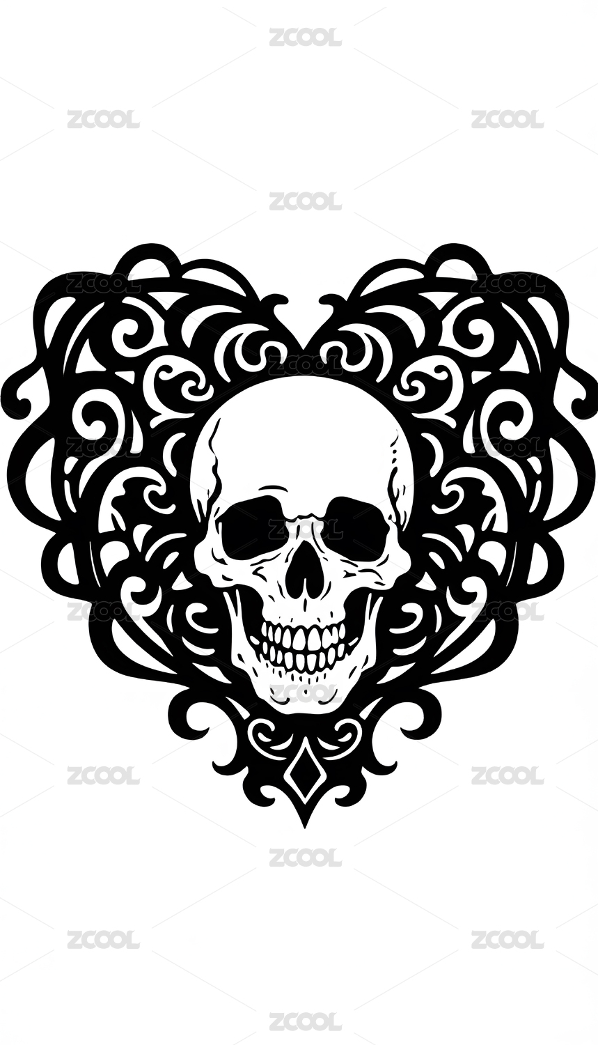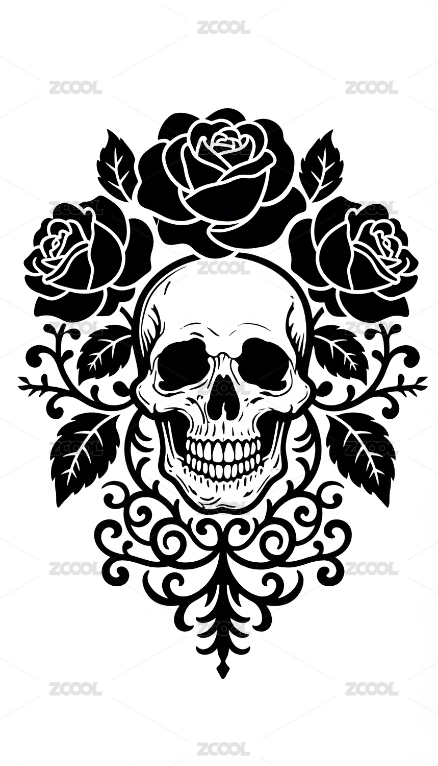 骷髅头玫瑰花蝴蝶暗黑风潮流插画