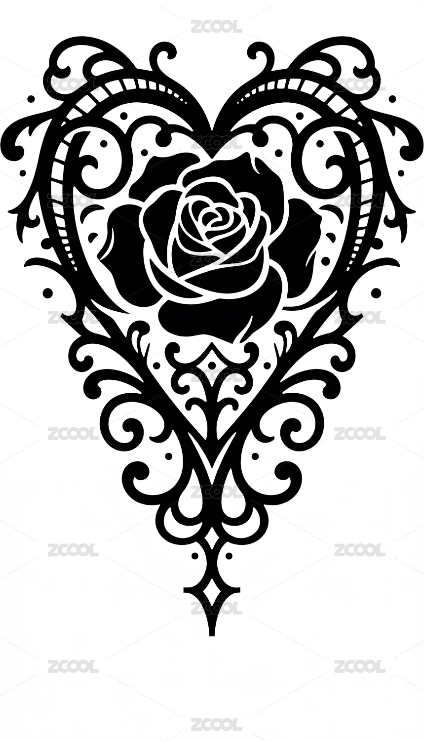 黑色哥特式爱心玫瑰纹身图案